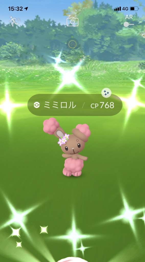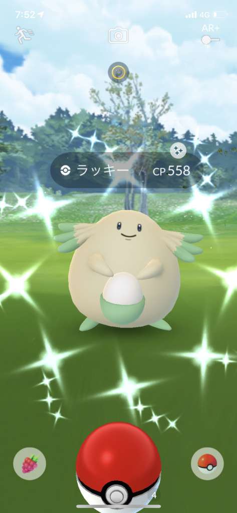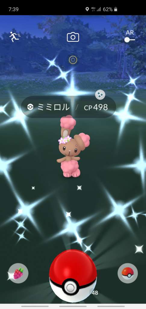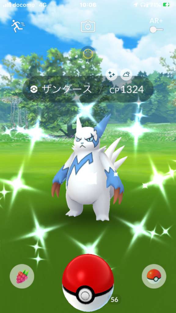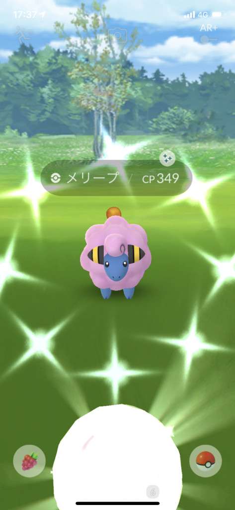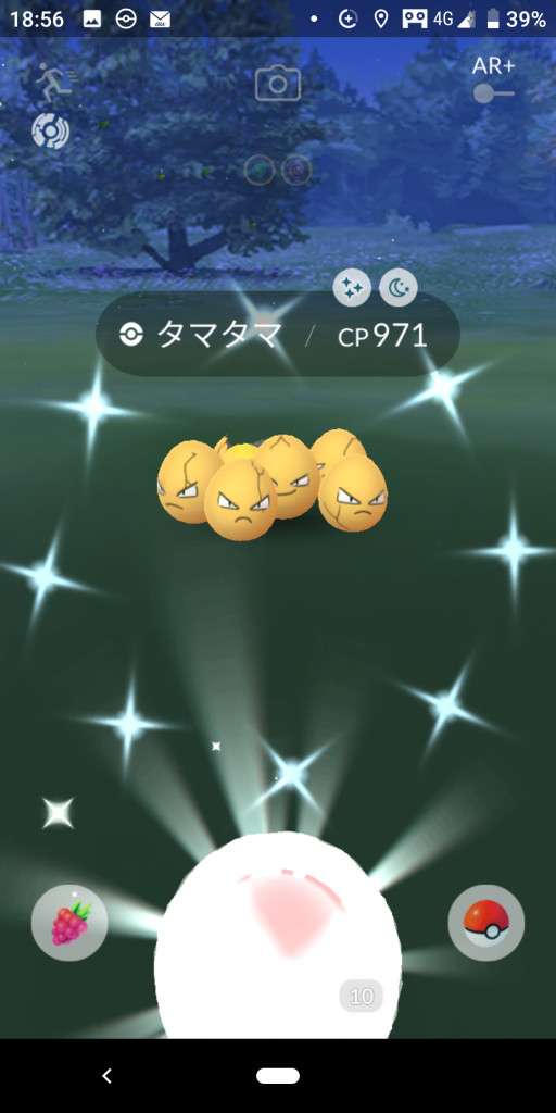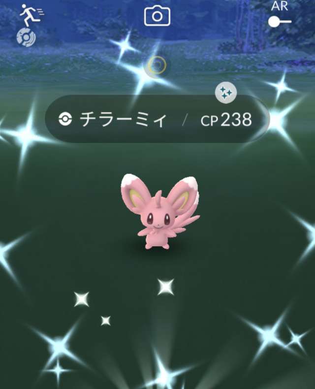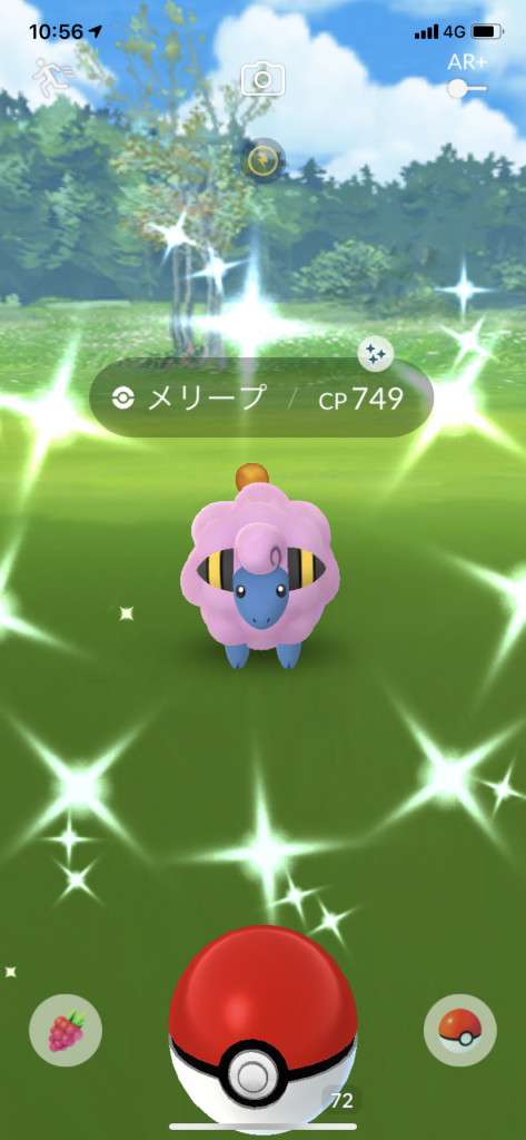 ・色違い出現したら、右上「AR+」のON・OFF切り替えで、タイミング良く写るまで何回も挑戦