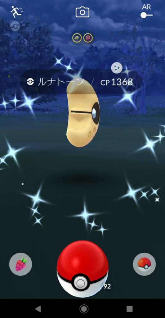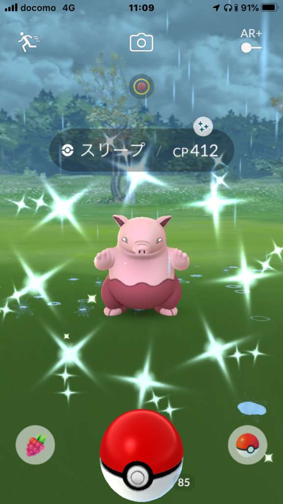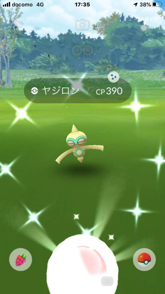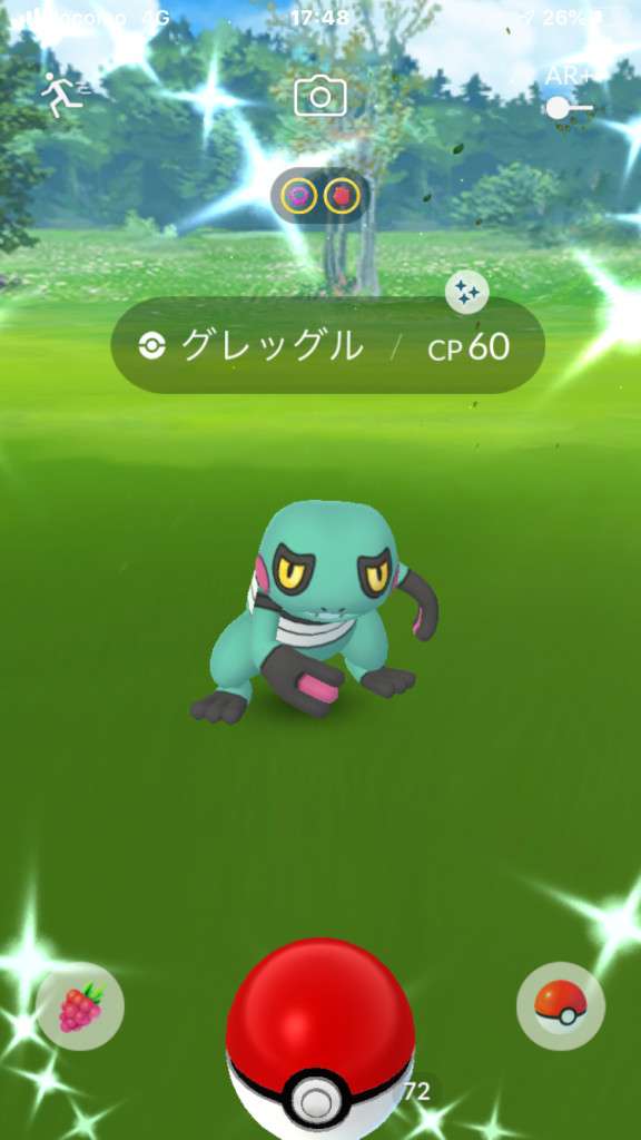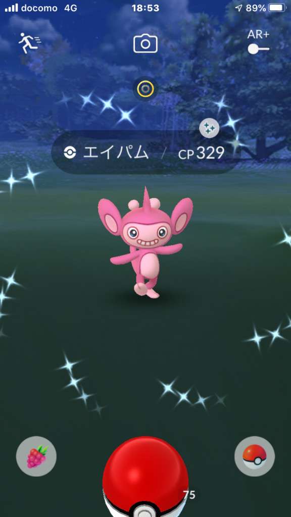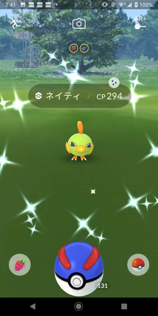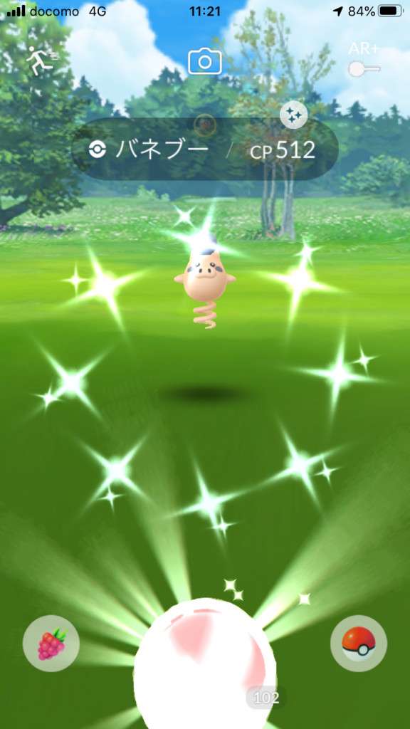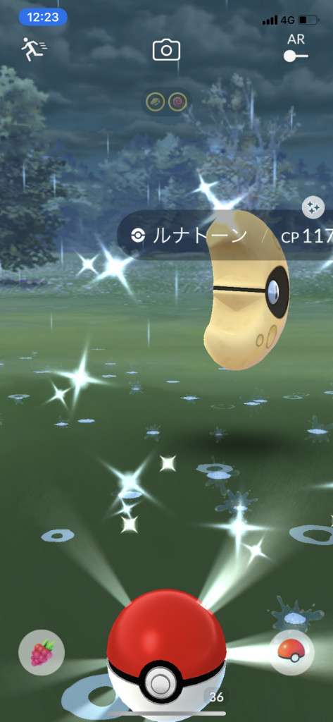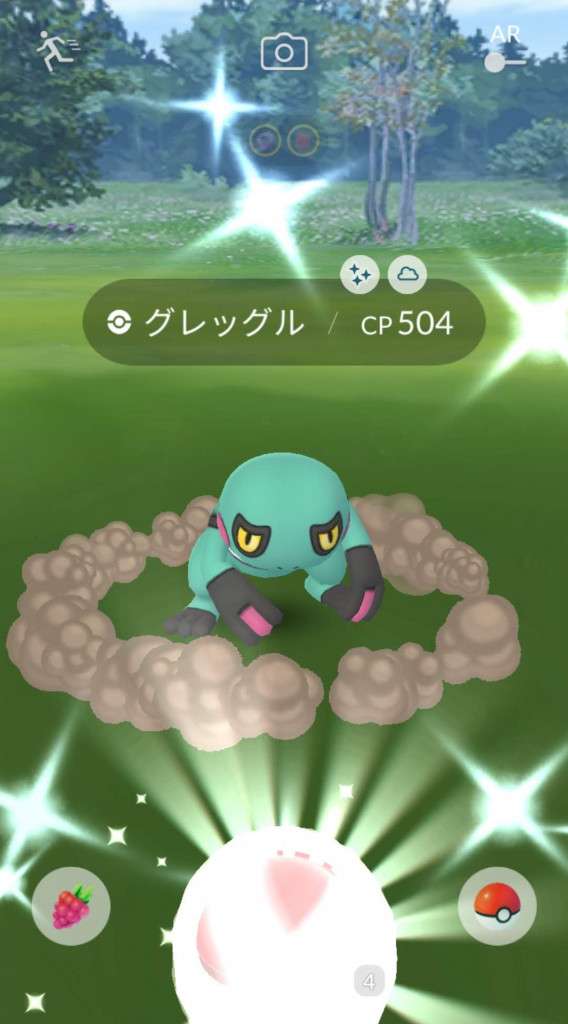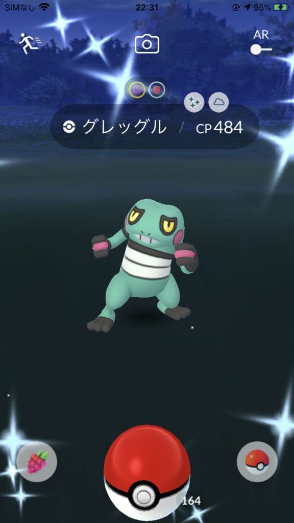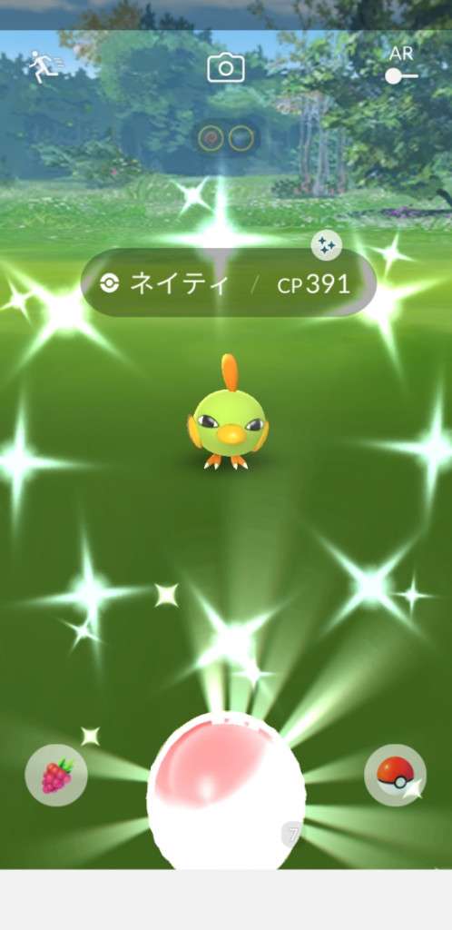 ・色違い出現したら、右上「AR+」のON・OFF切り替えで、タイミング良く写るまで何回も挑戦