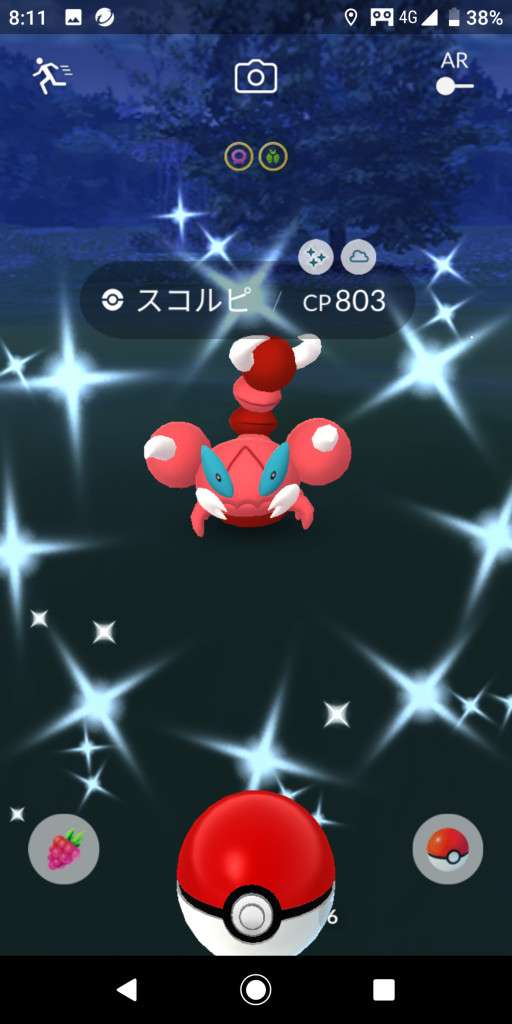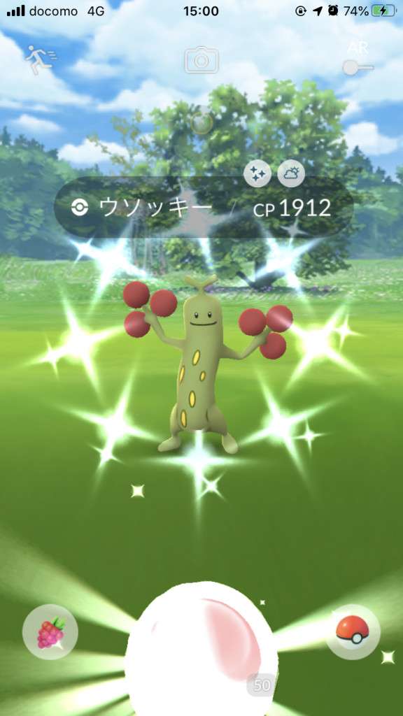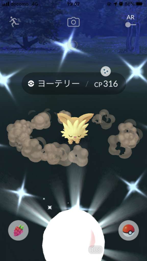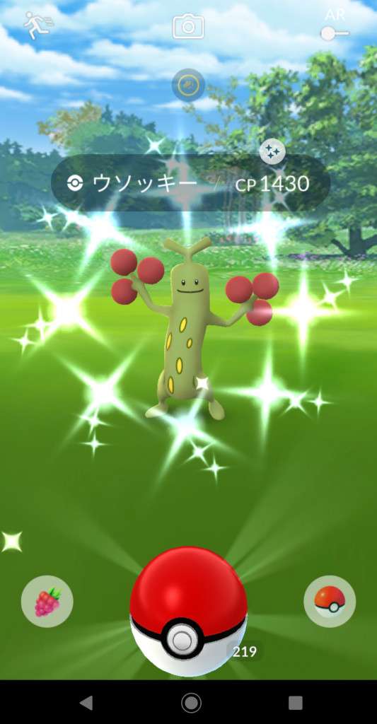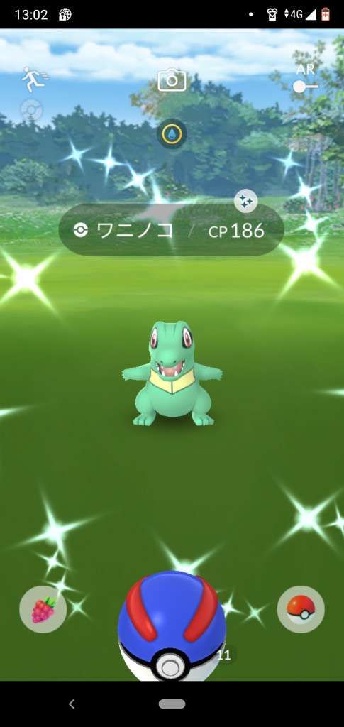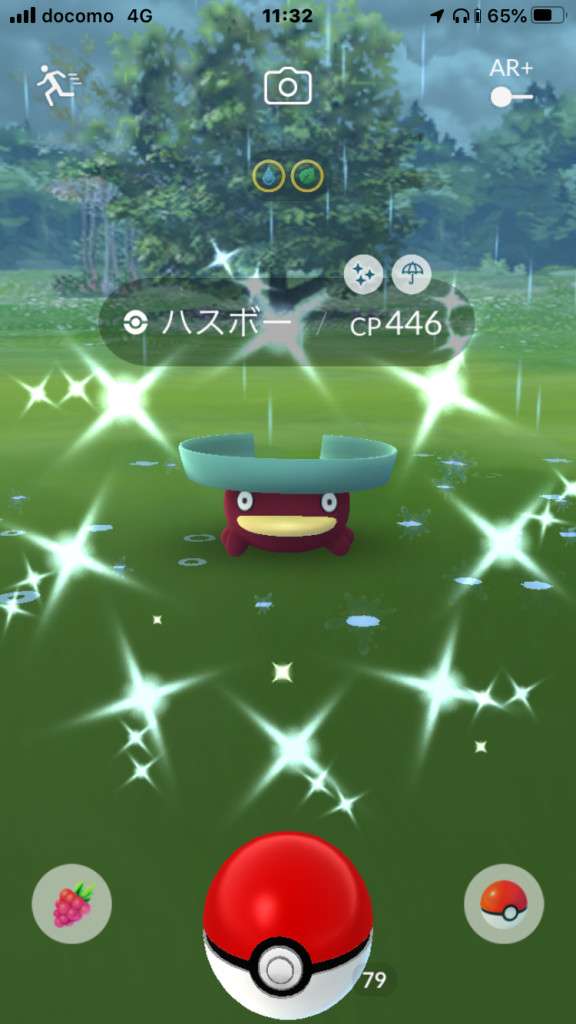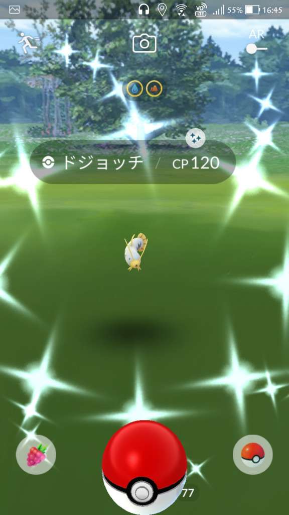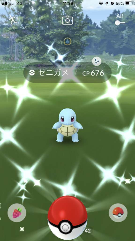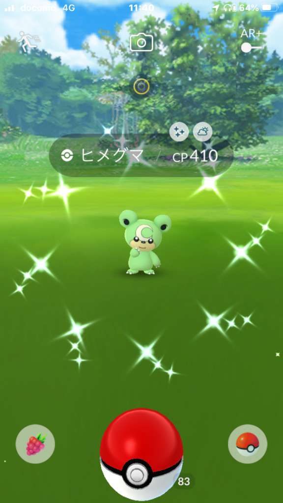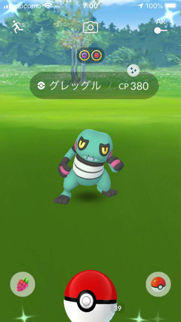 ・色違い出現したら、右上「AR+」のON・OFF切り替えで、タイミング良く写るまで何回も挑戦