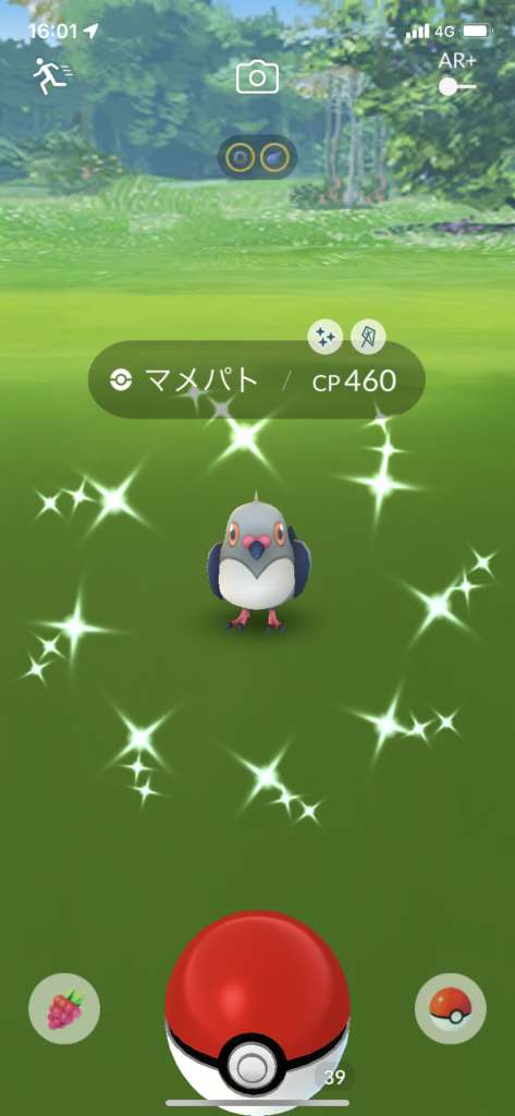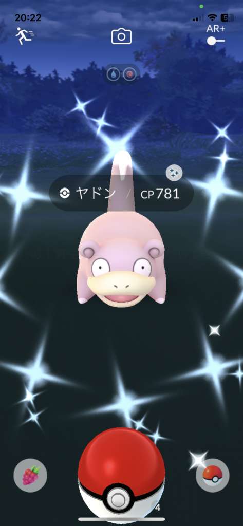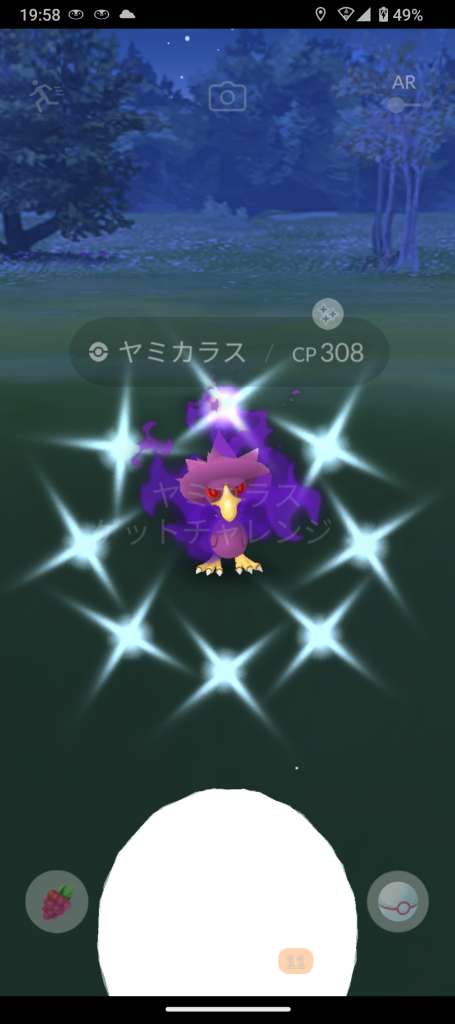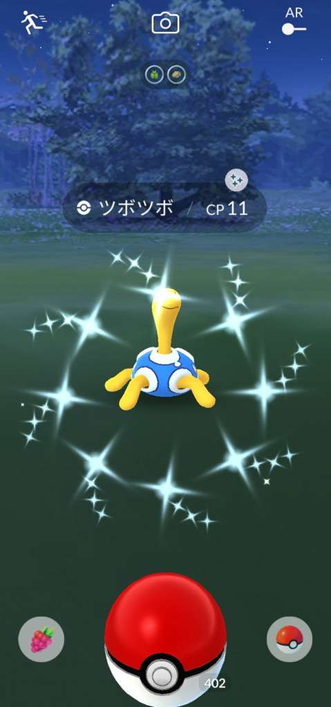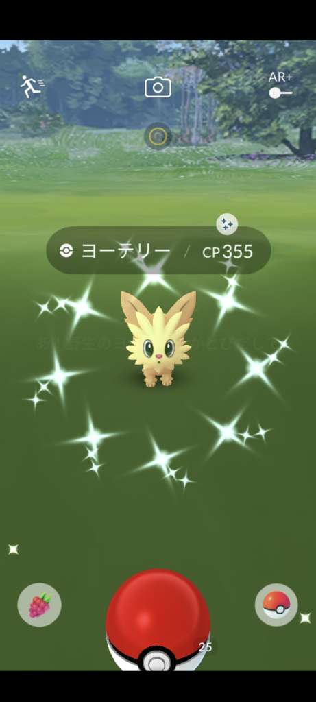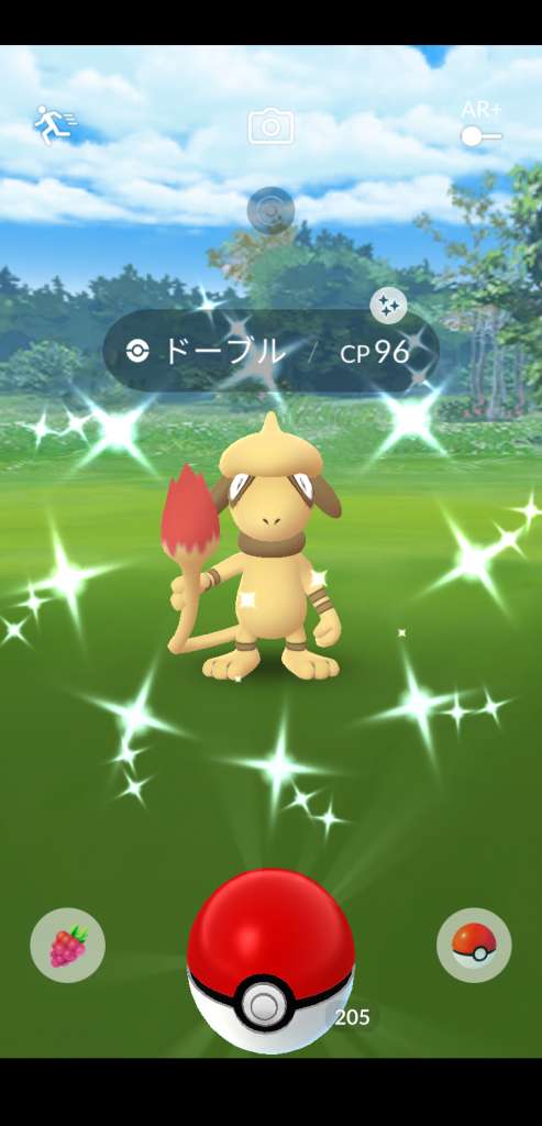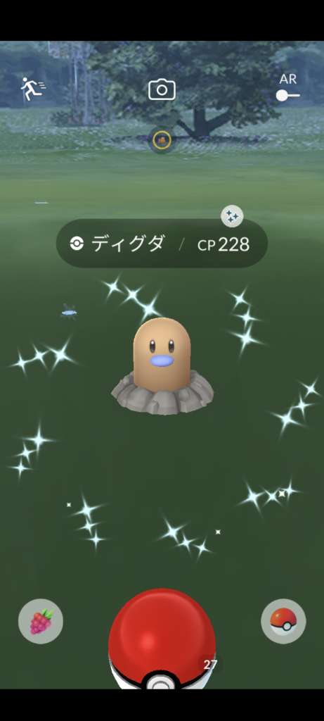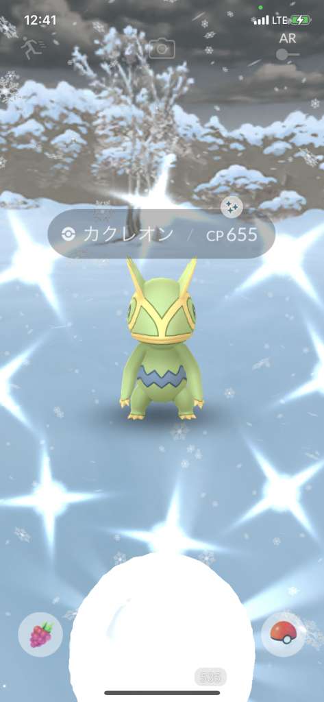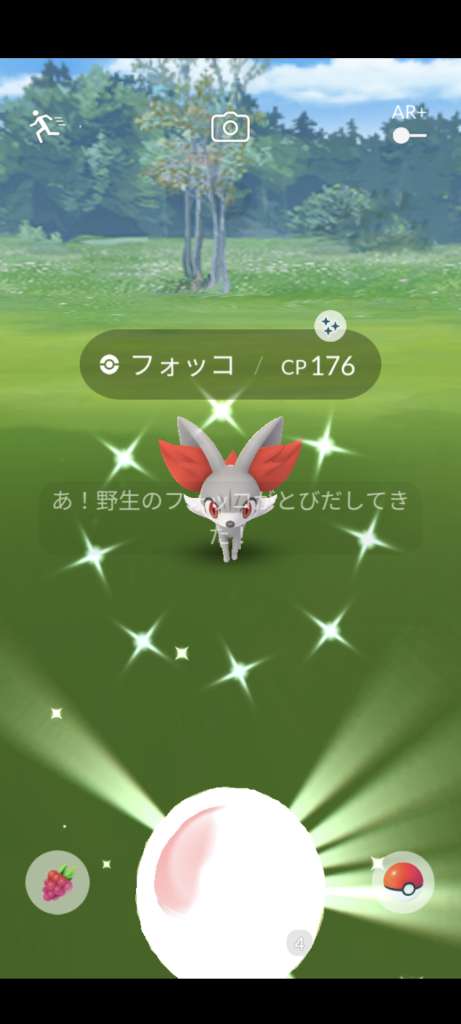 ・色違い出現したら、右上「AR+」のON・OFF切り替えで、タイミング良く写るまで何回も挑戦