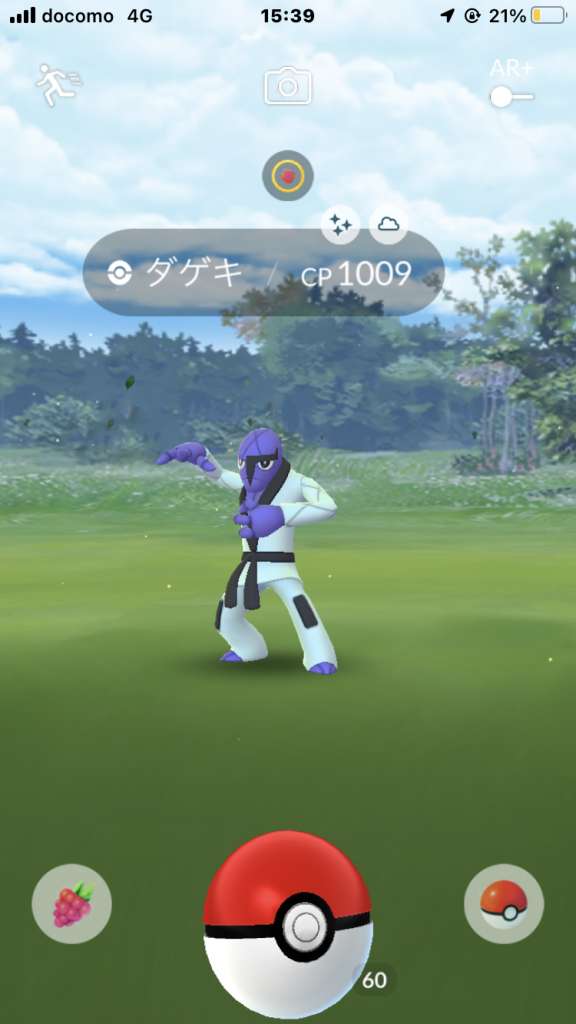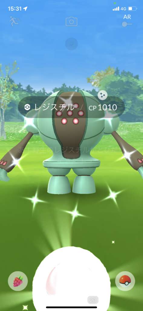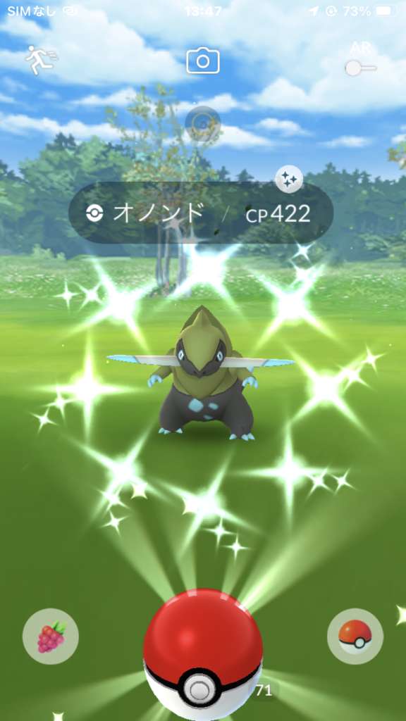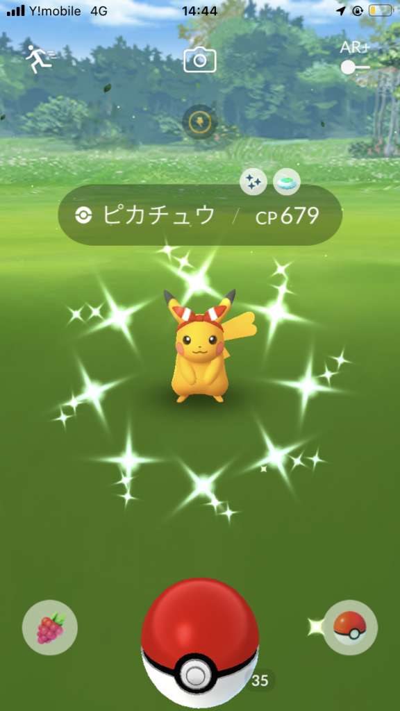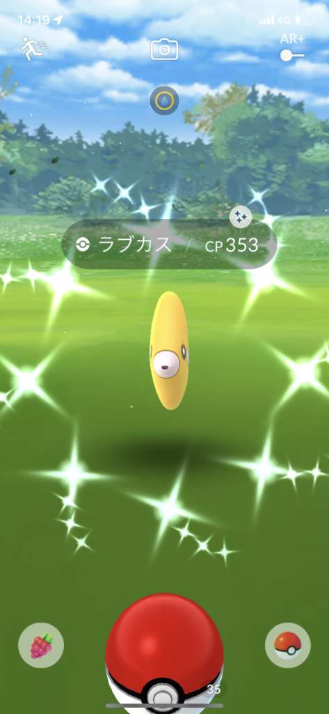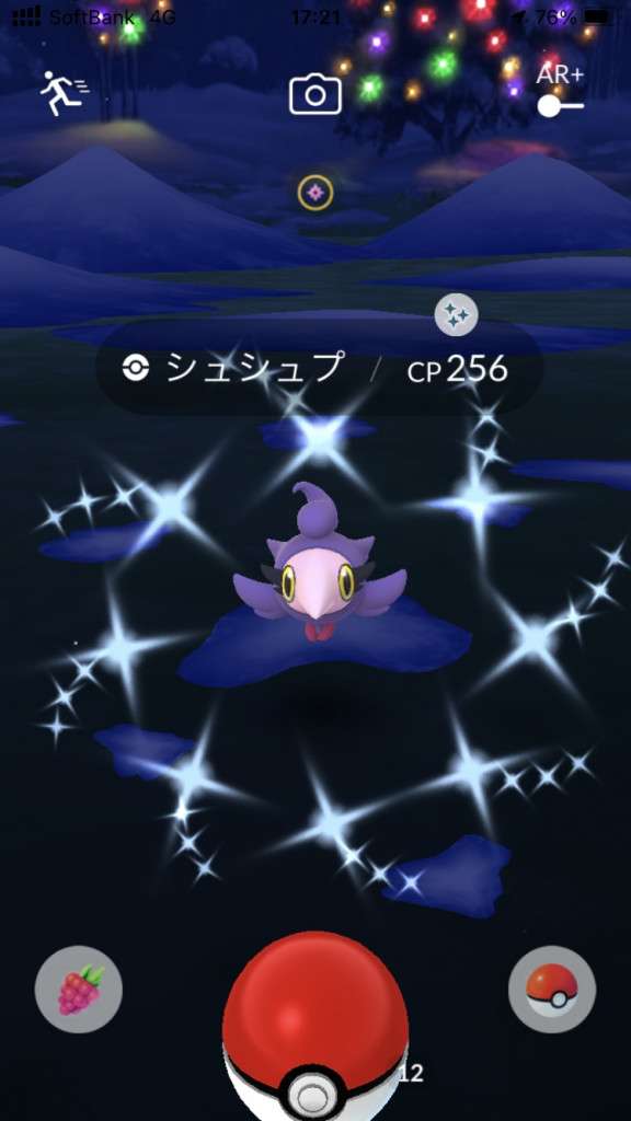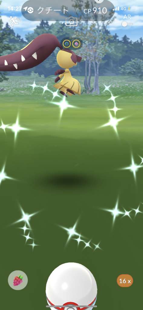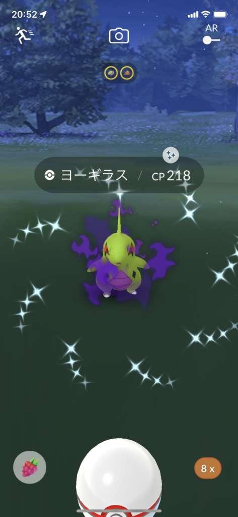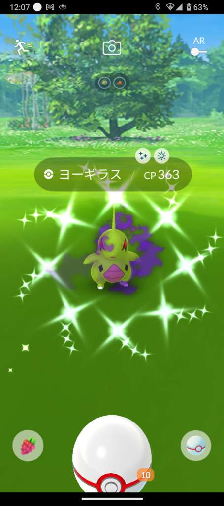 ・色違い出現したら、右上「AR+」のON・OFF切り替えで、タイミング良く写るまで何回も挑戦
