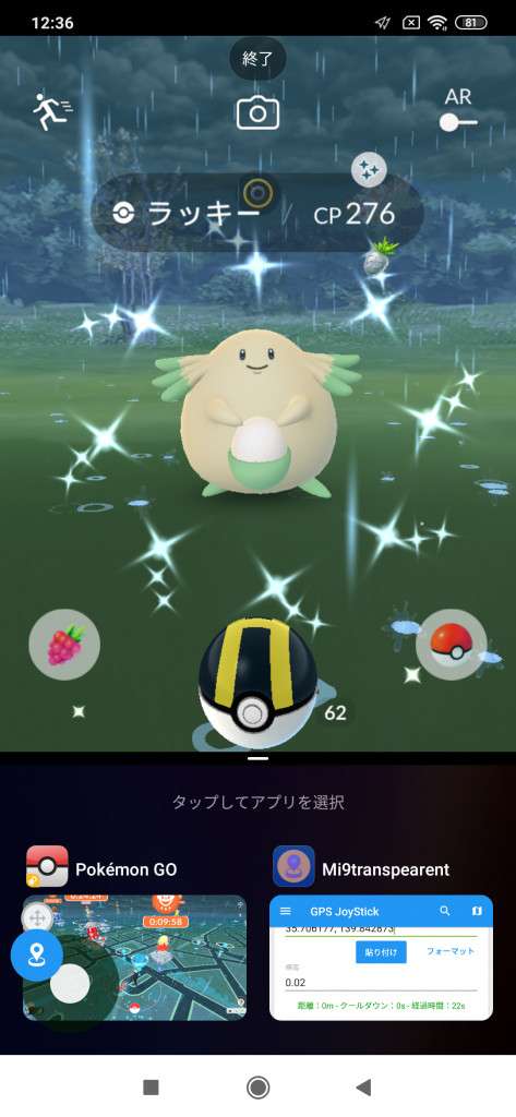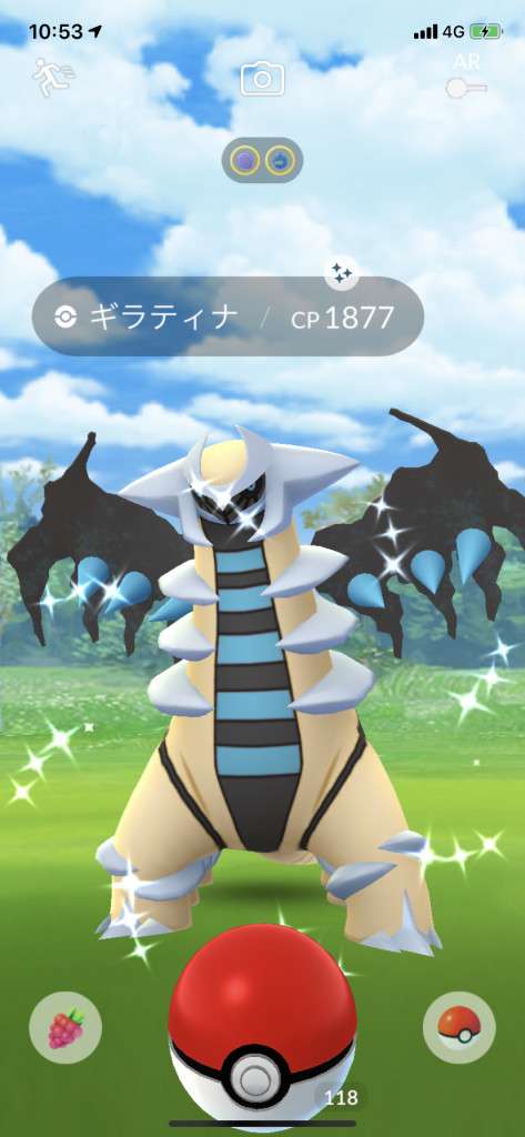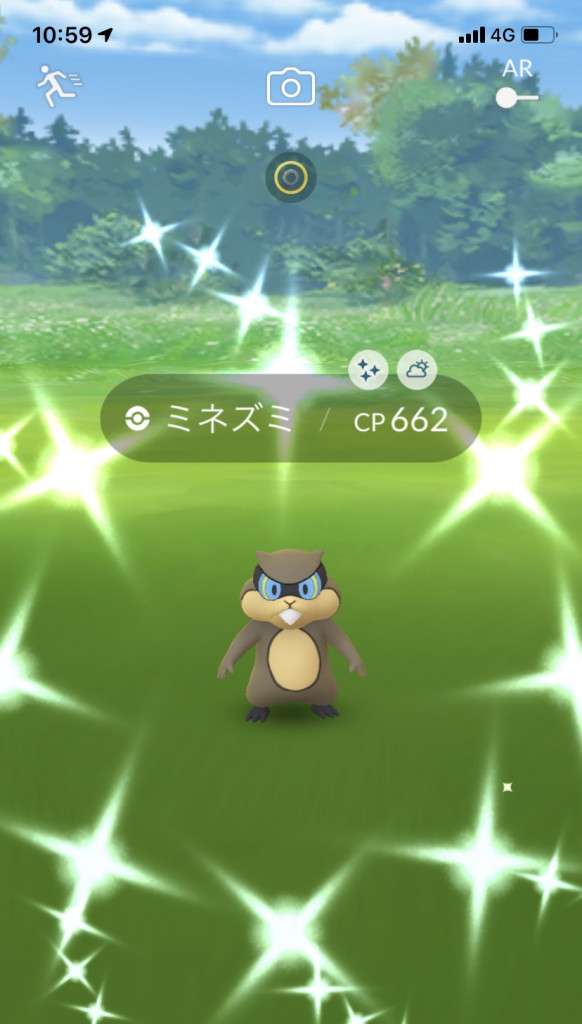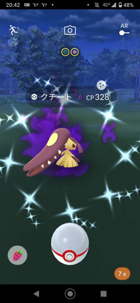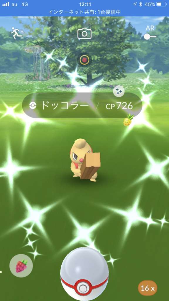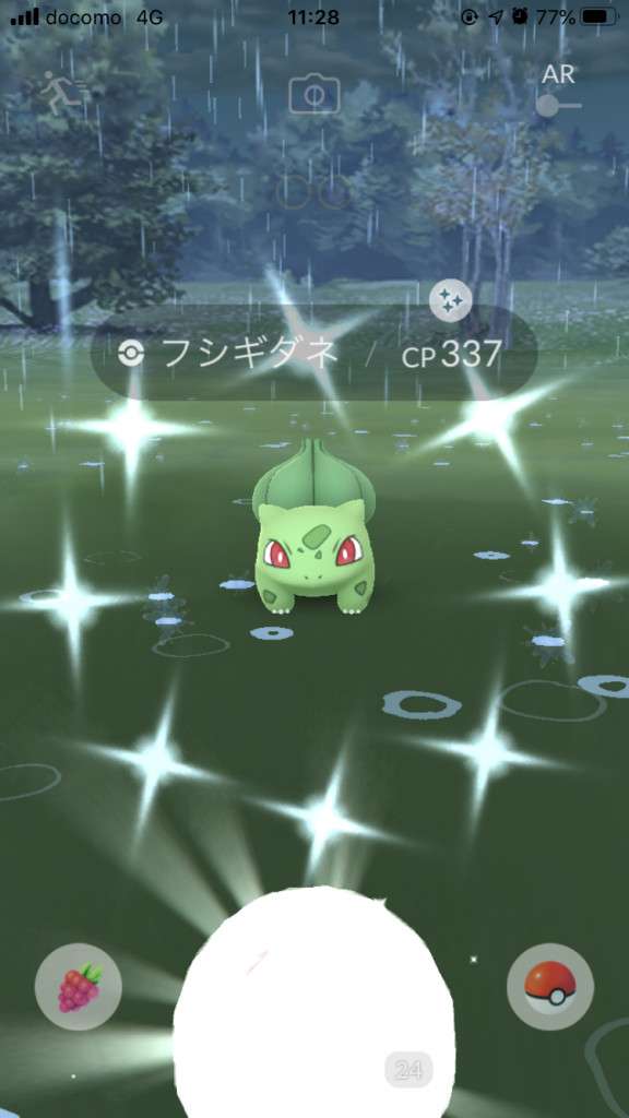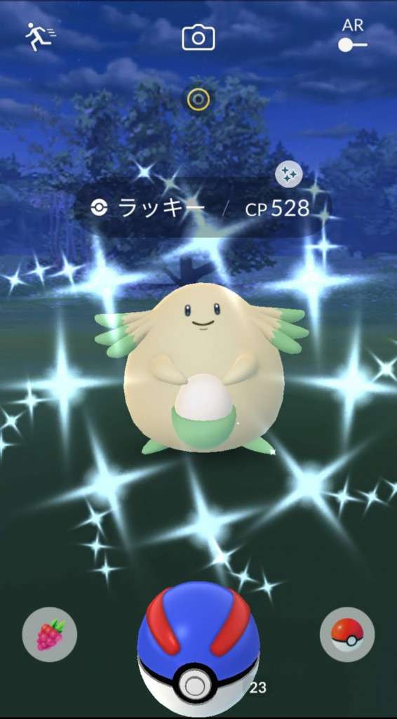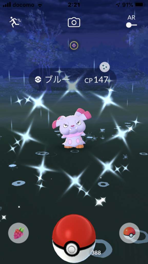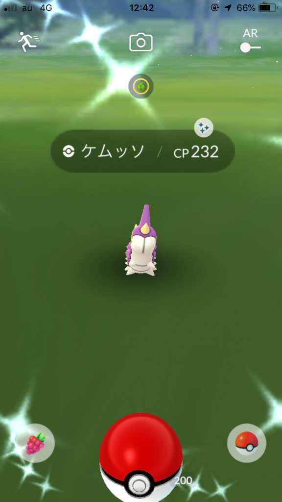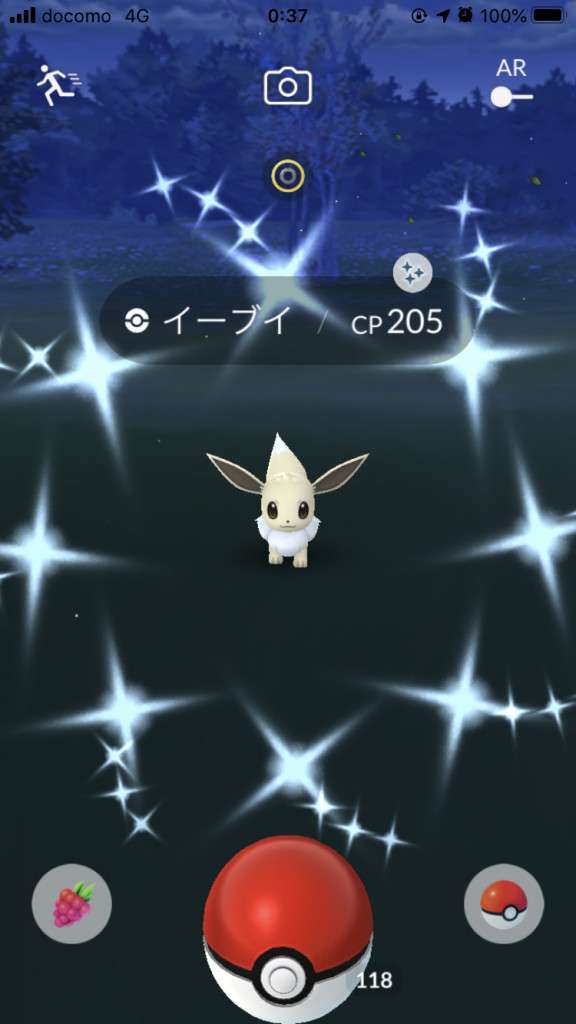 ・色違い出現したら、右上「AR+」のON・OFF切り替えで、タイミング良く写るまで何回も挑戦