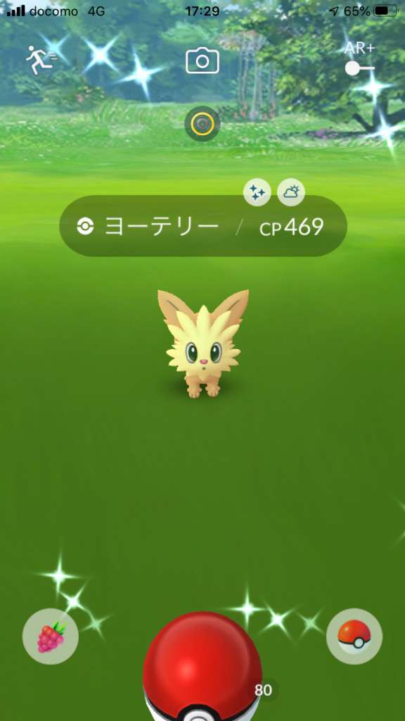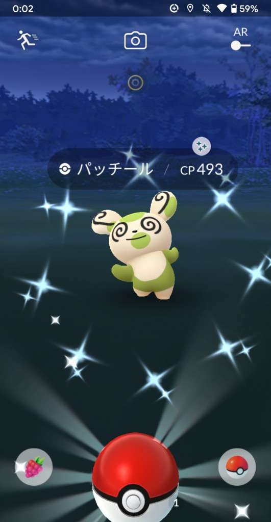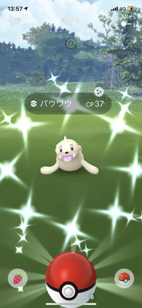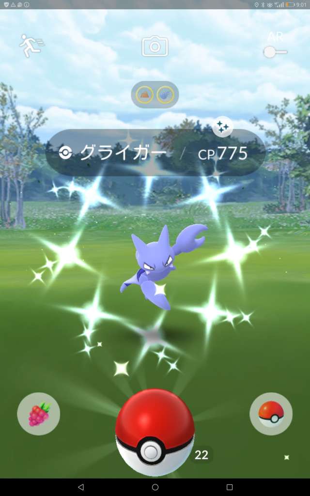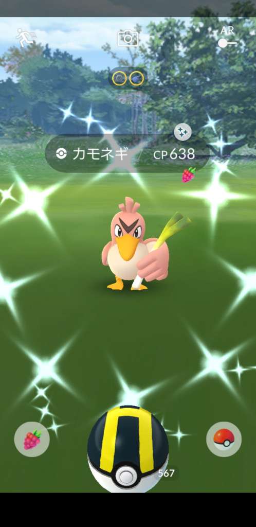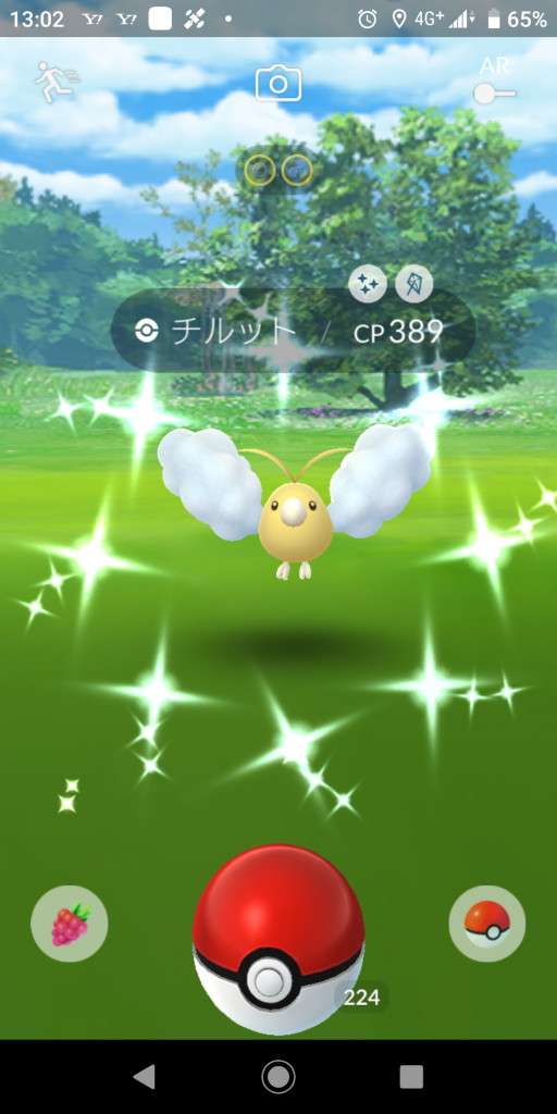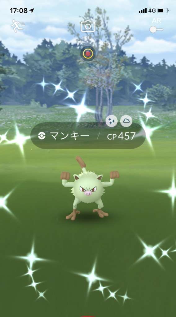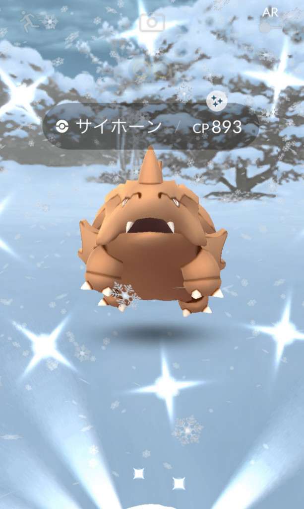 ・色違い出現したら、右上「AR+」のON・OFF切り替えで、タイミング良く写るまで何回も挑戦