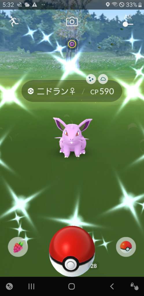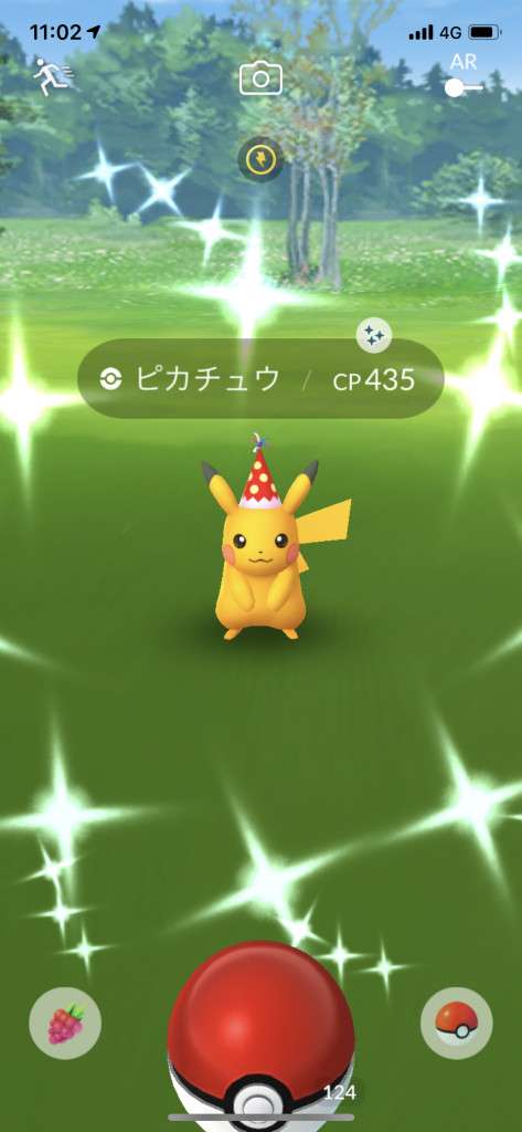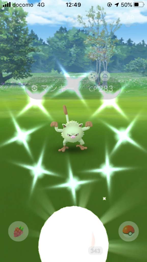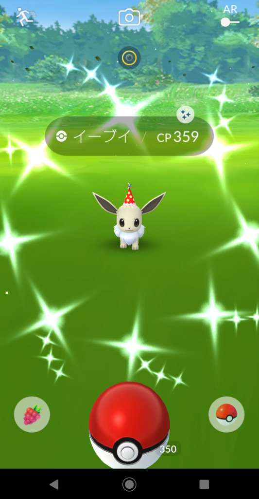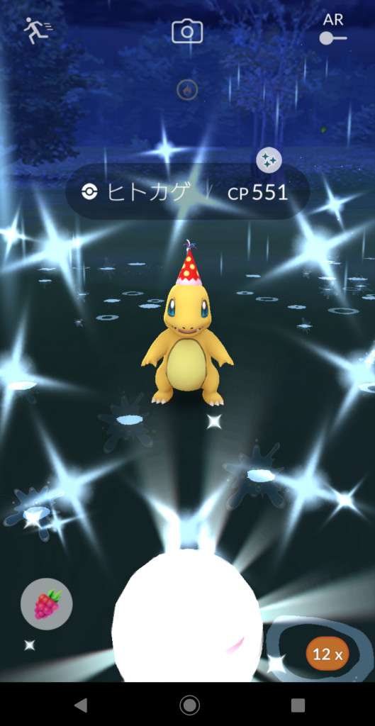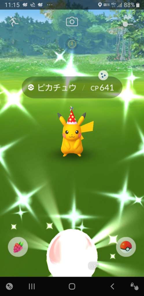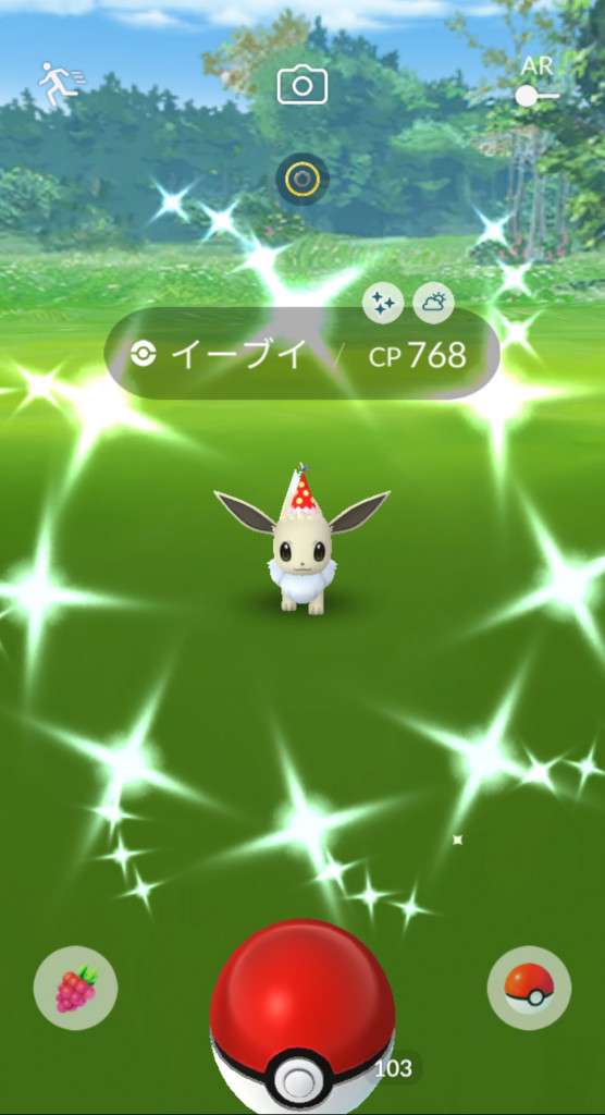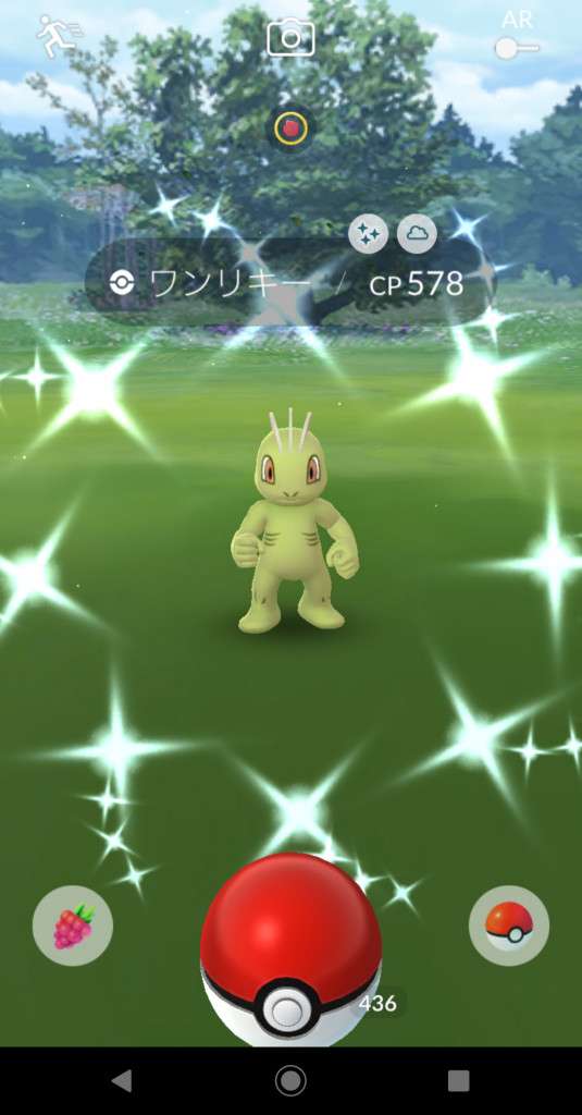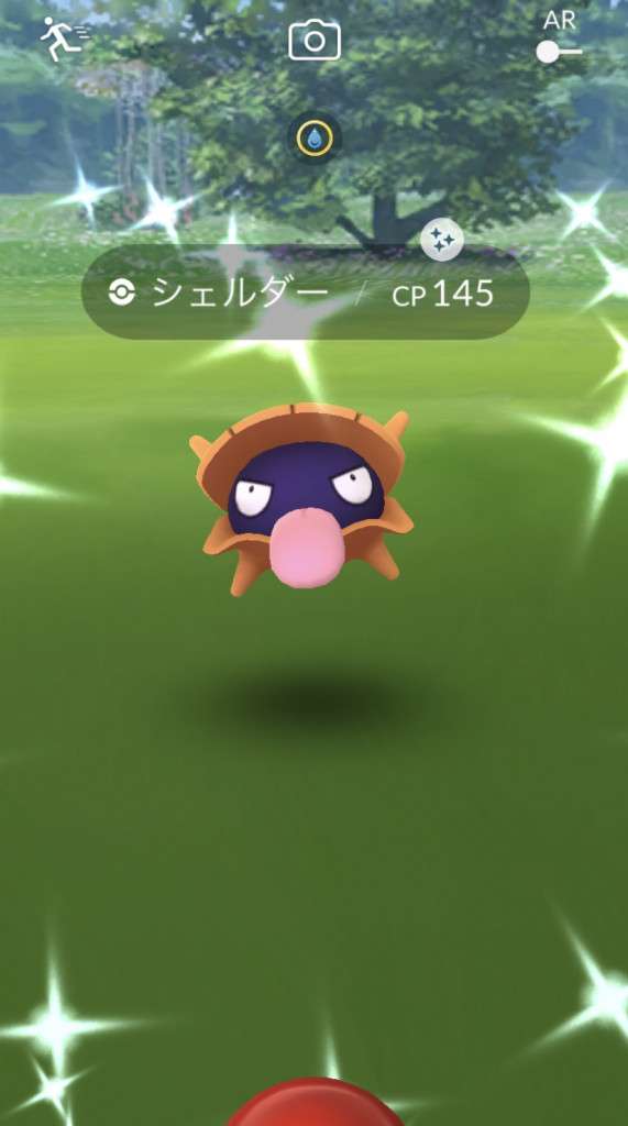 ・色違い出現したら、右上「AR+」のON・OFF切り替えで、タイミング良く写るまで何回も挑戦