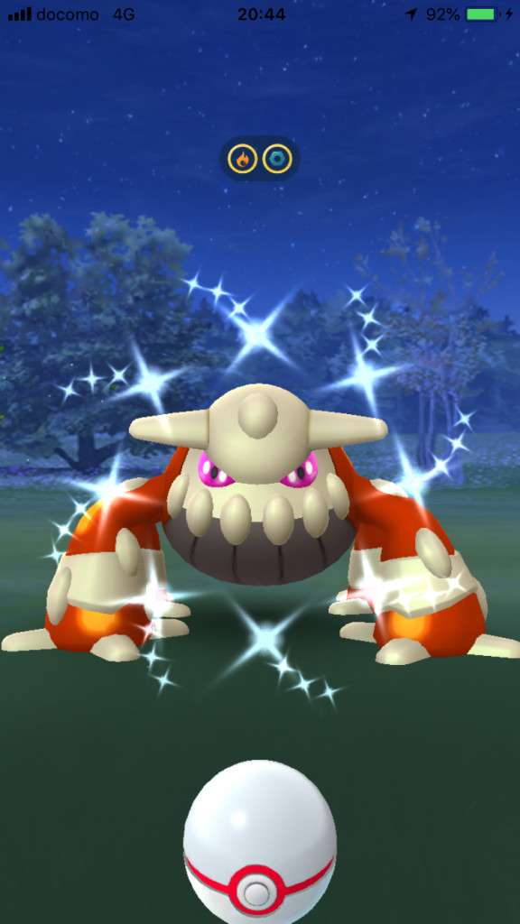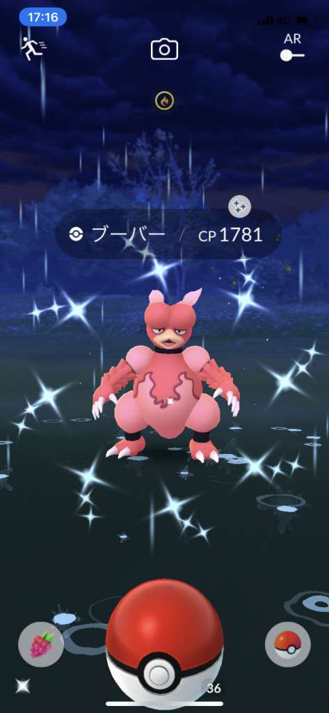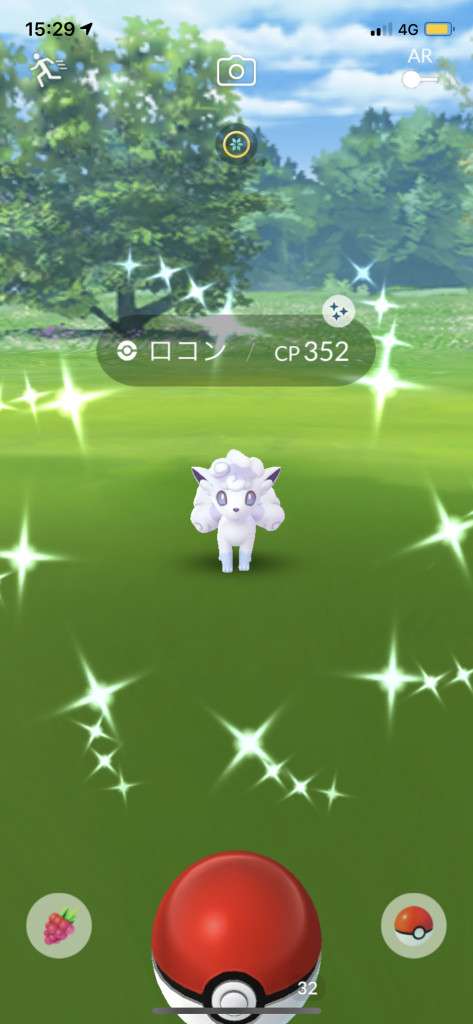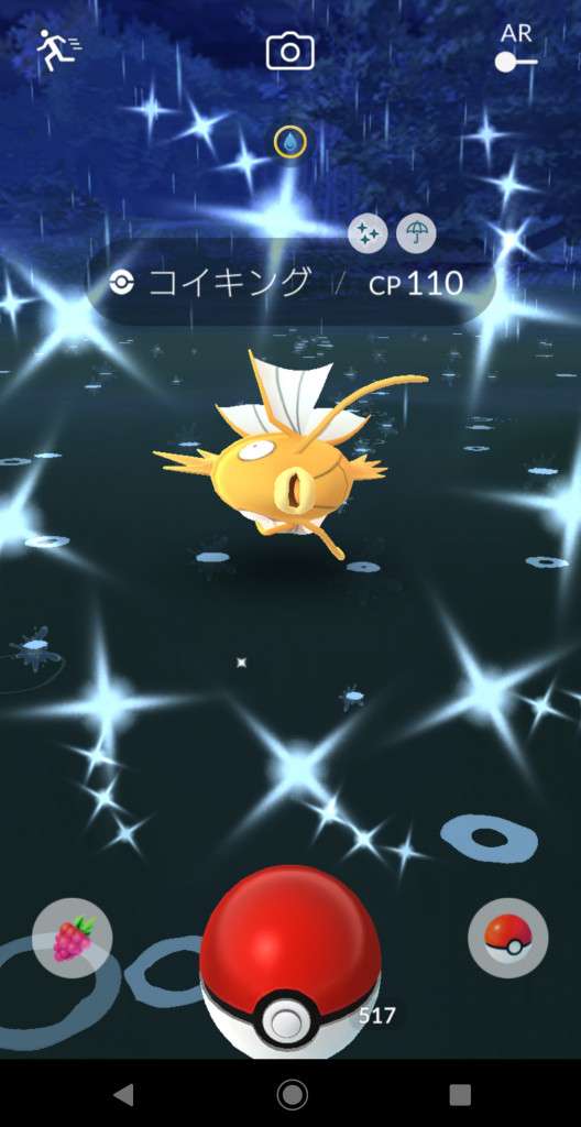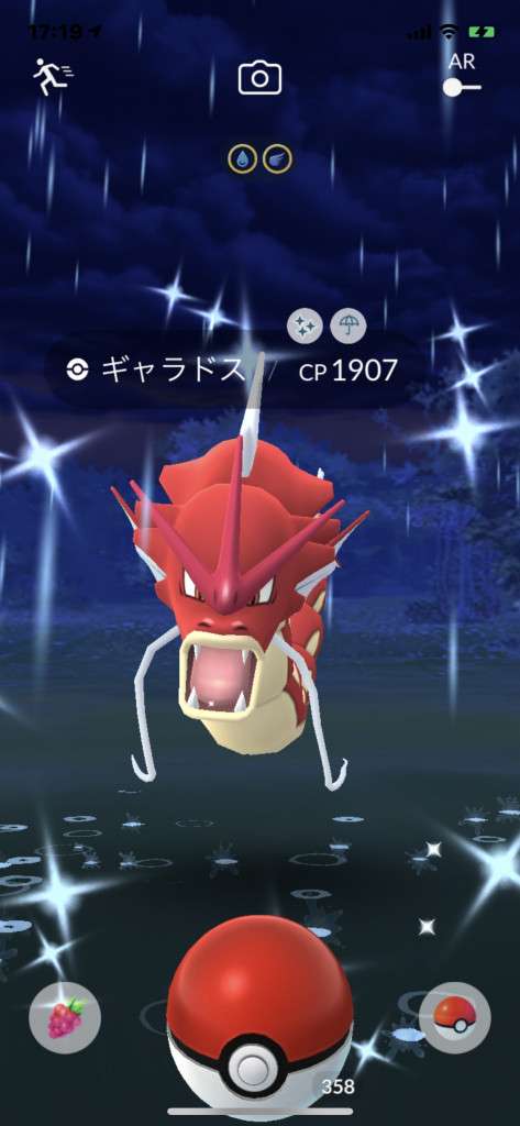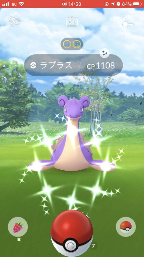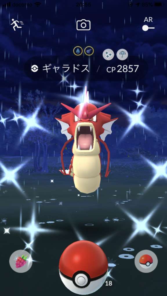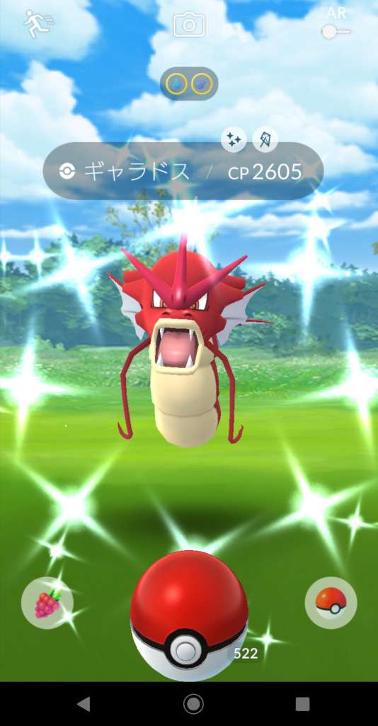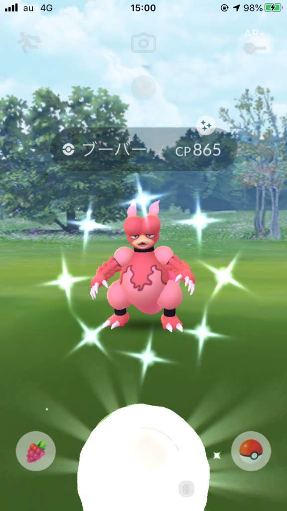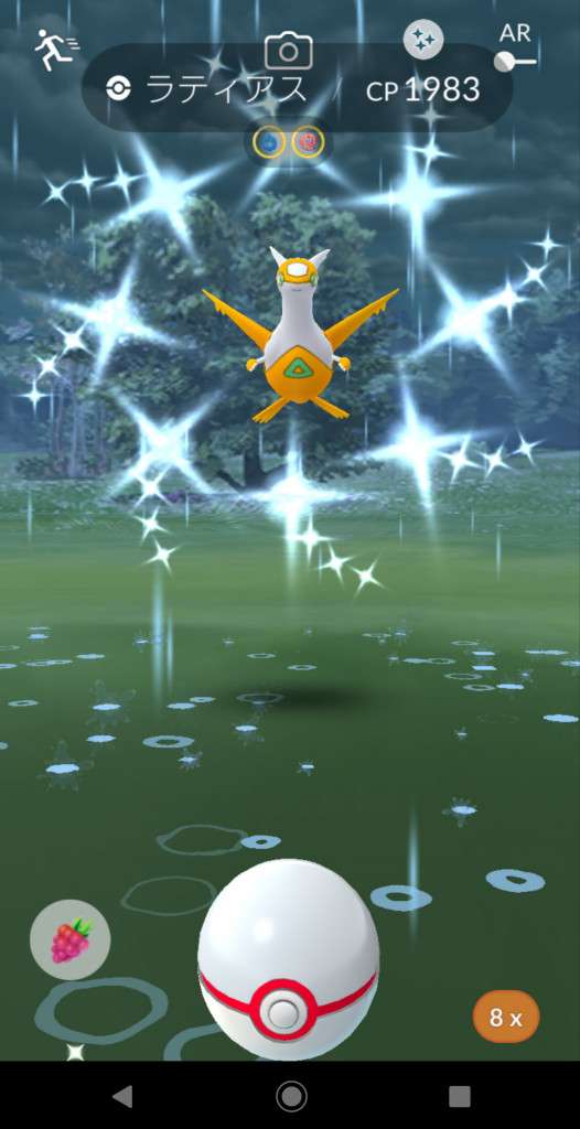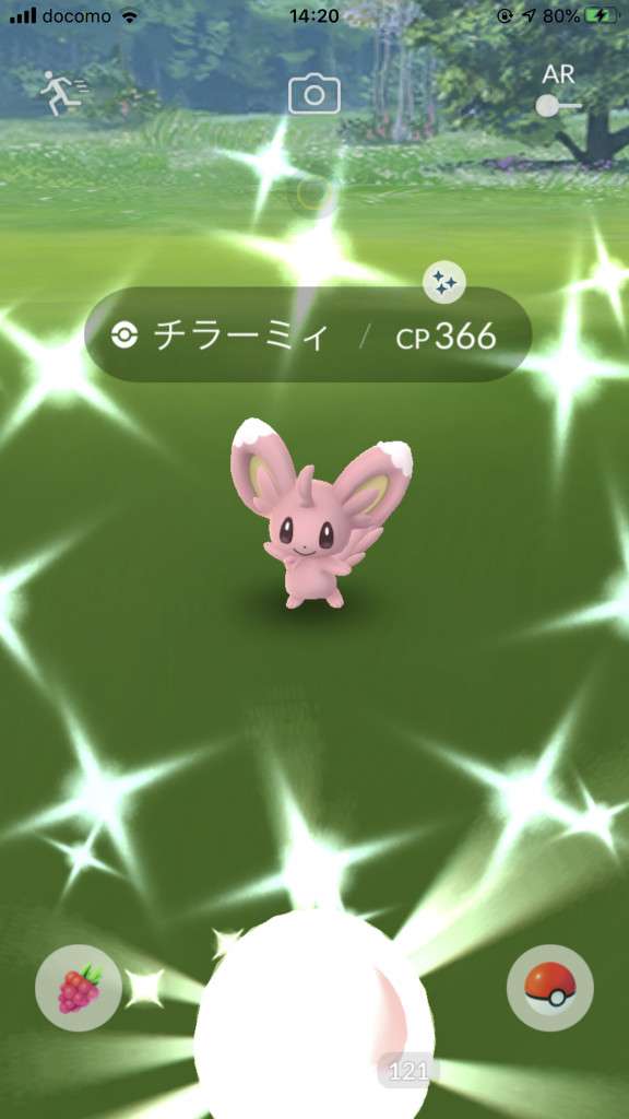 ・色違い出現したら、右上「AR+」のON・OFF切り替えで、タイミング良く写るまで何回も挑戦