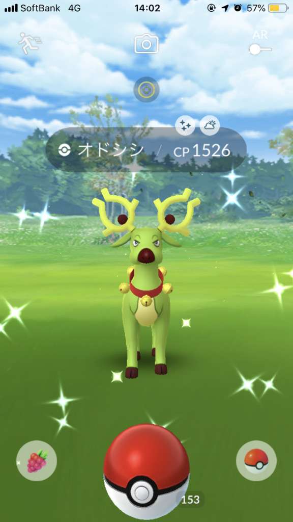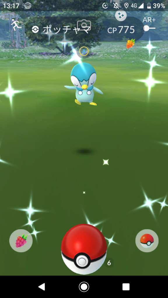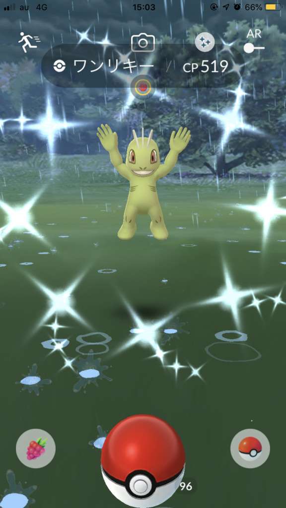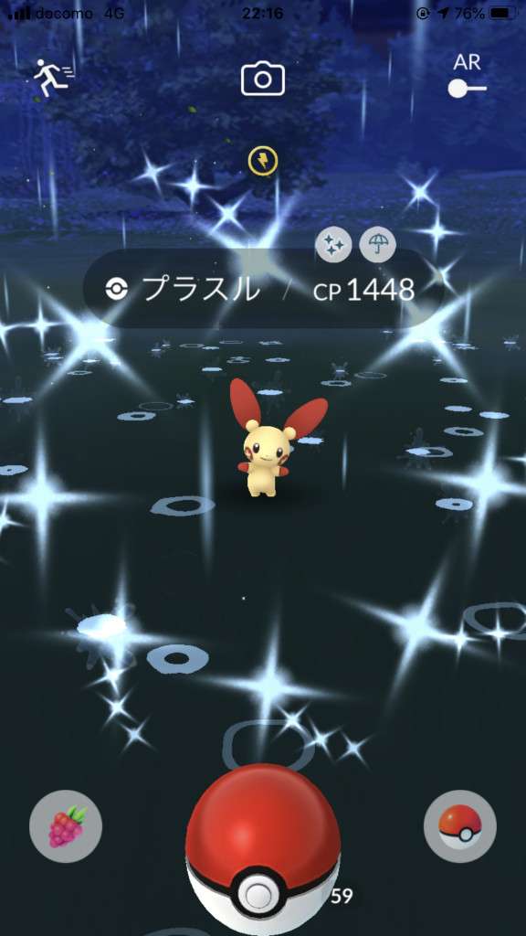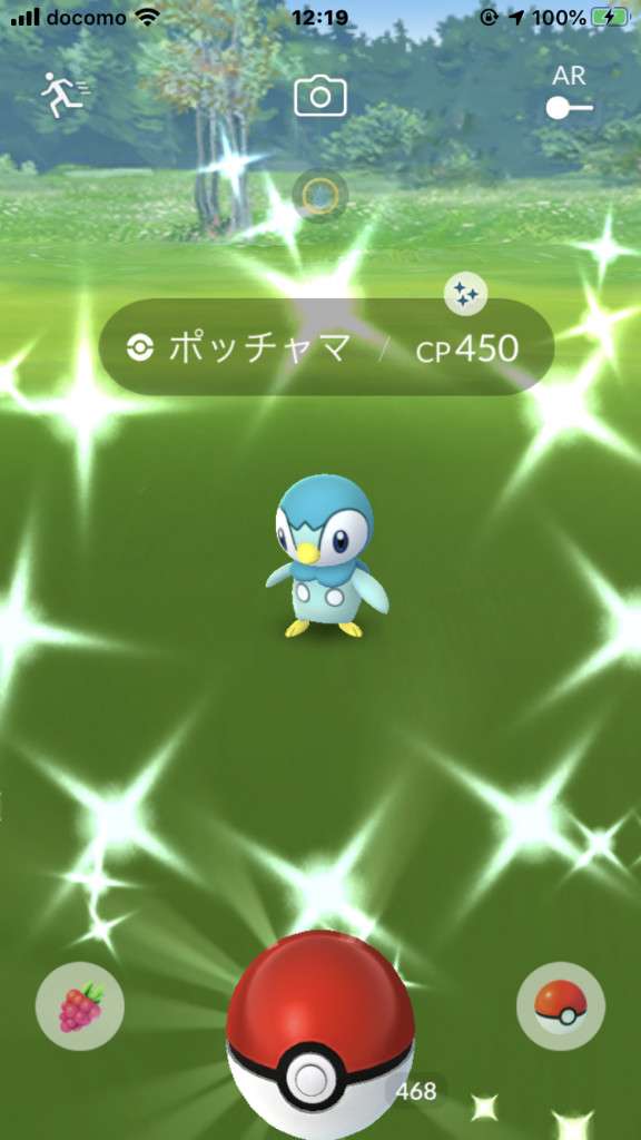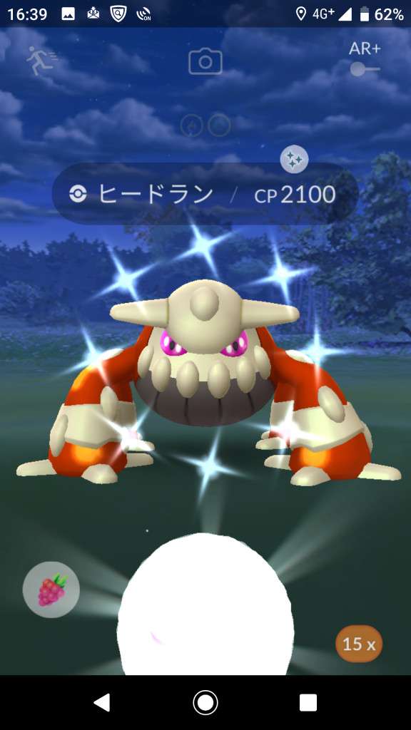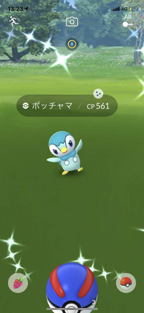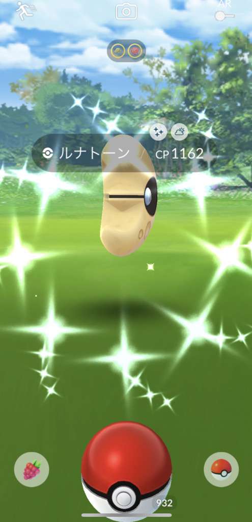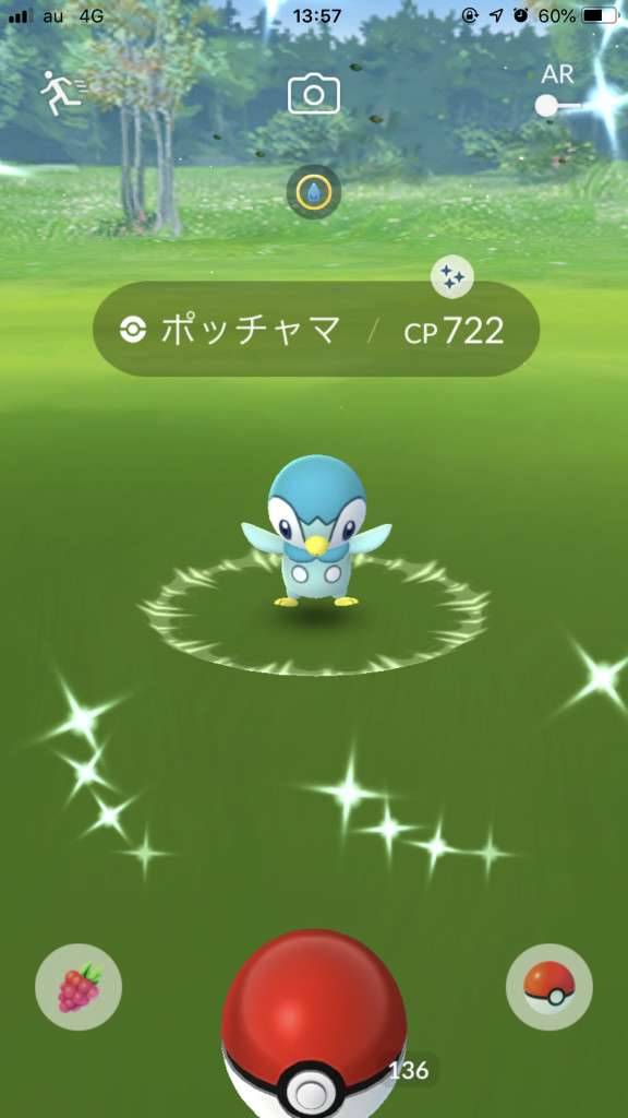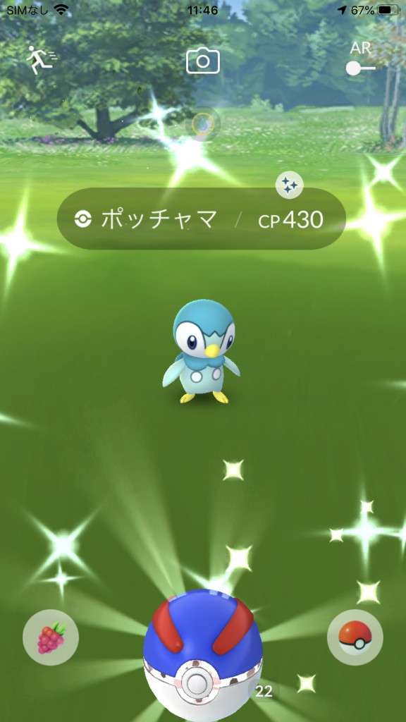 ・色違い出現したら、右上「AR+」のON・OFF切り替えで、タイミング良く写るまで何回も挑戦