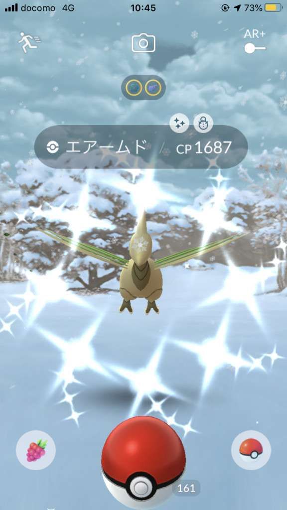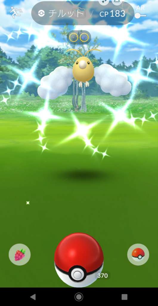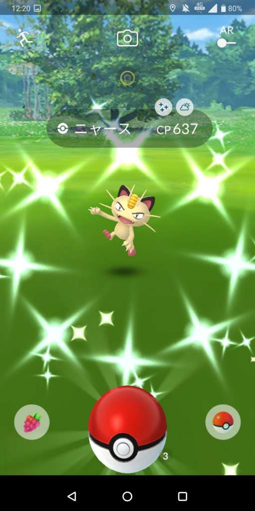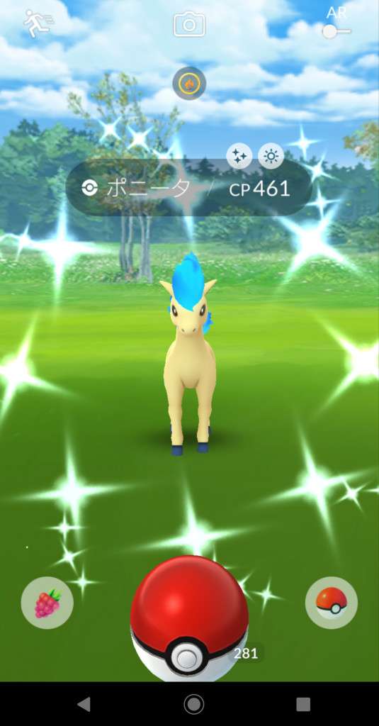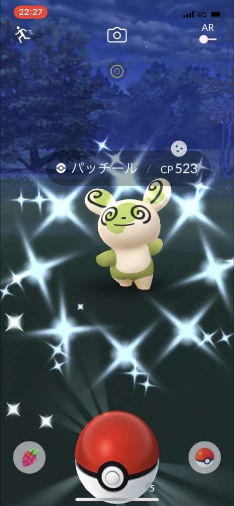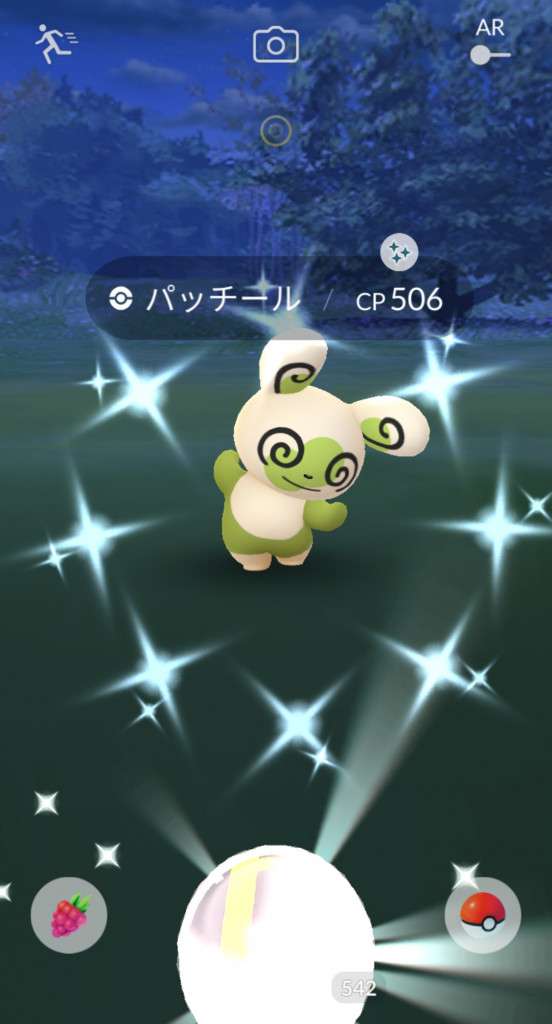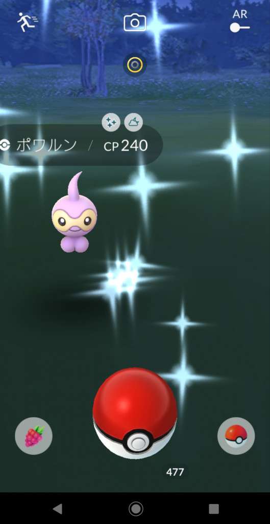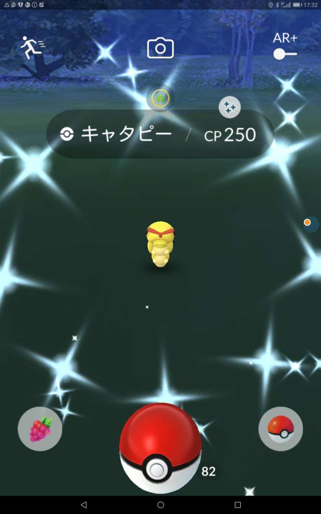・色違い出現したら、右上「AR+」のON・OFF切り替えで、タイミング良く写るまで何回も挑戦
