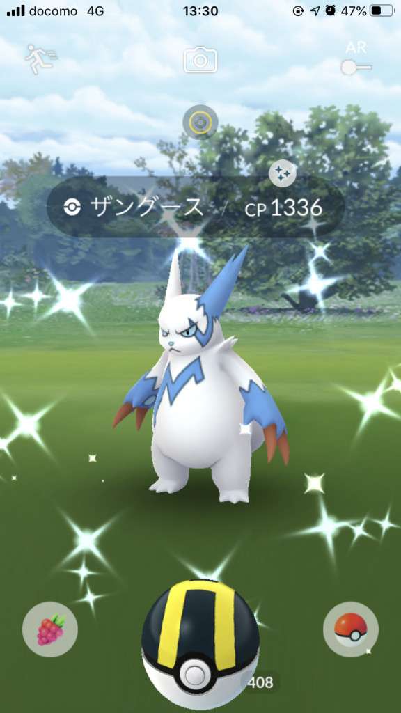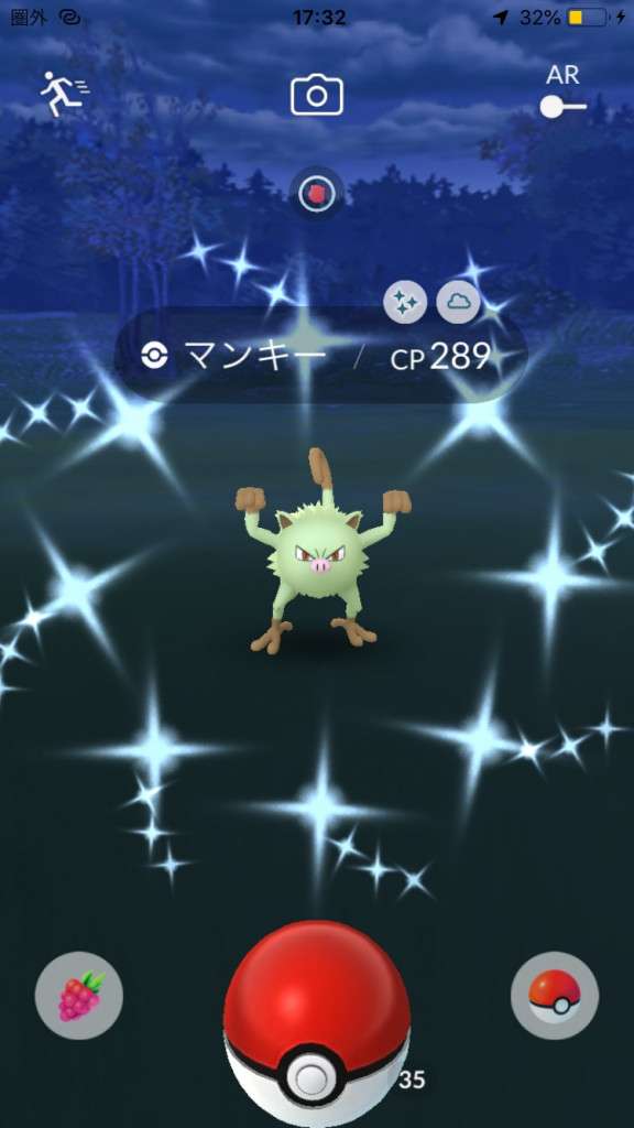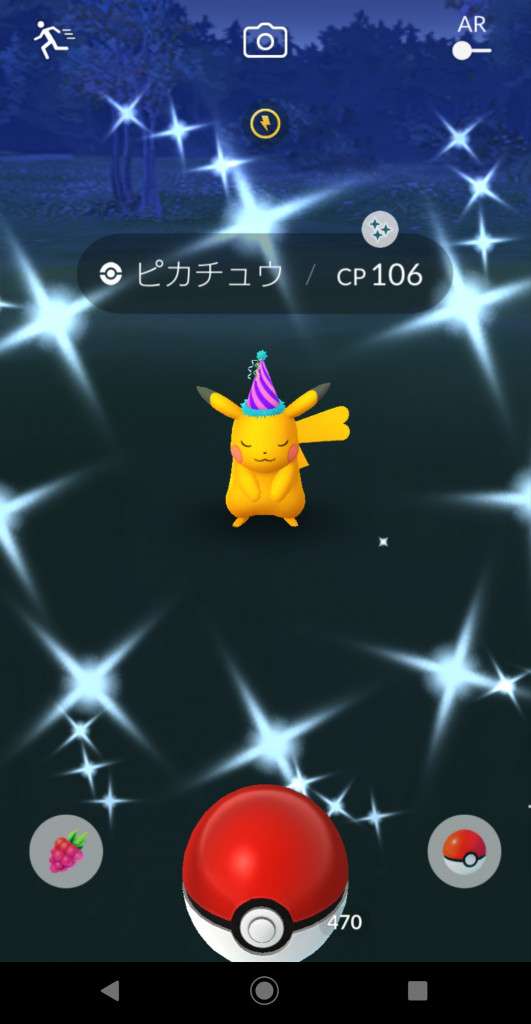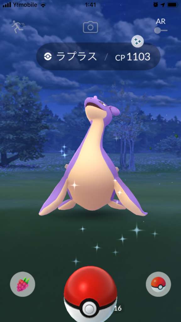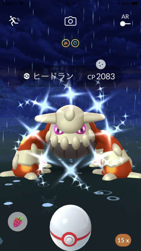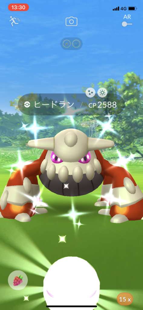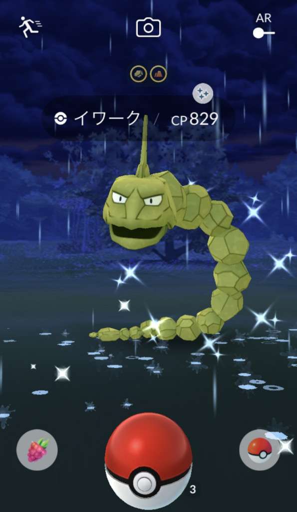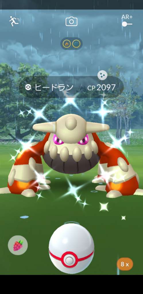 ・色違い出現したら、右上「AR+」のON・OFF切り替えで、タイミング良く写るまで何回も挑戦