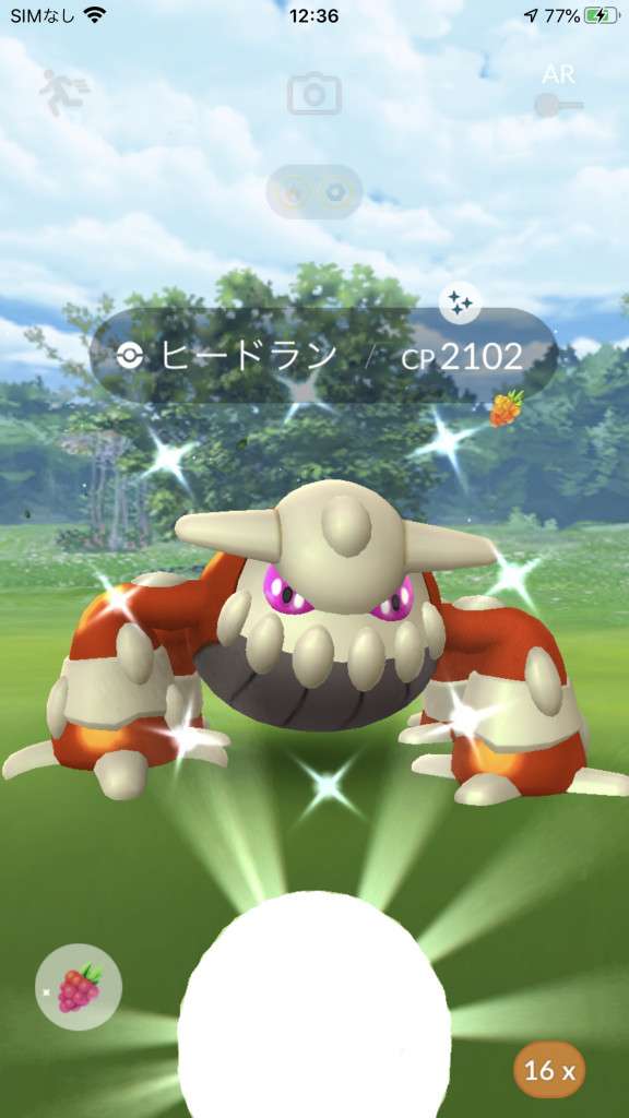 ・色違い出現したら、右上「AR+」のON・OFF切り替えで、タイミング良く写るまで何回も挑戦