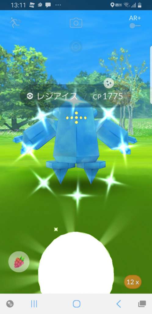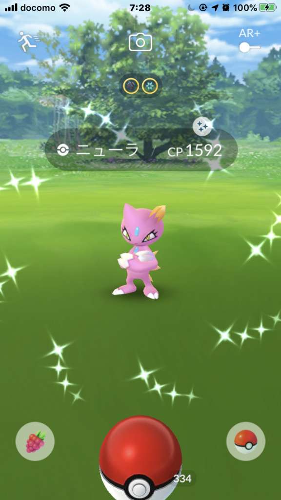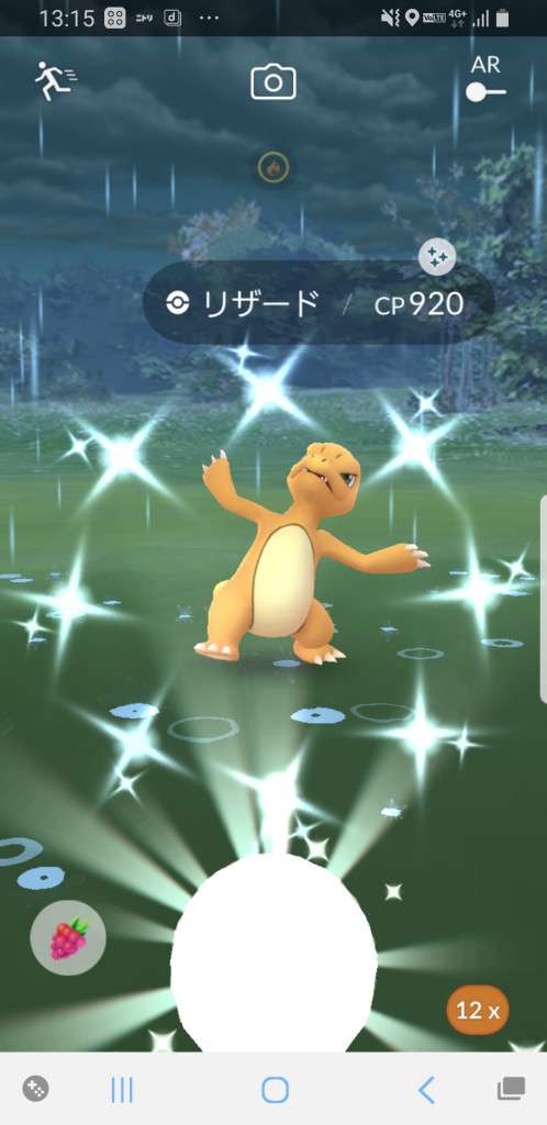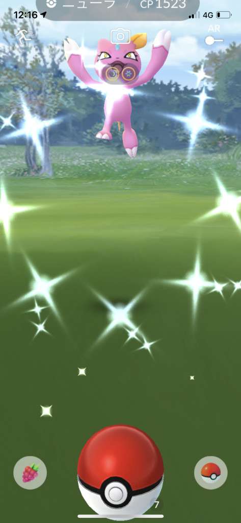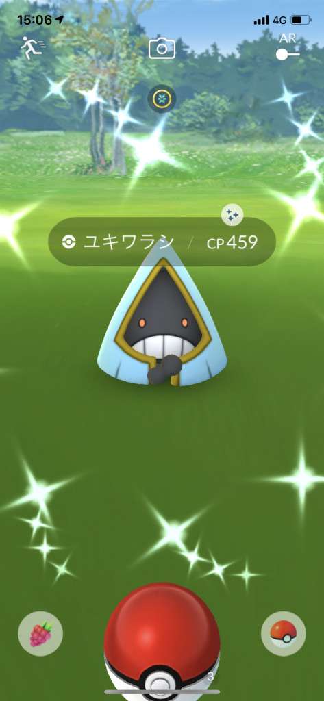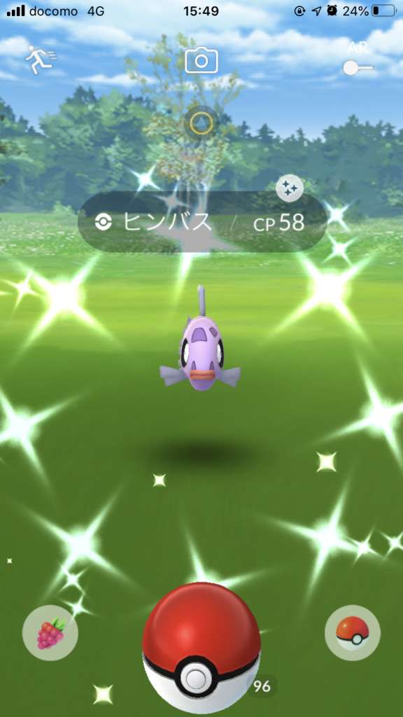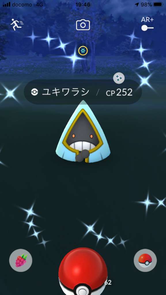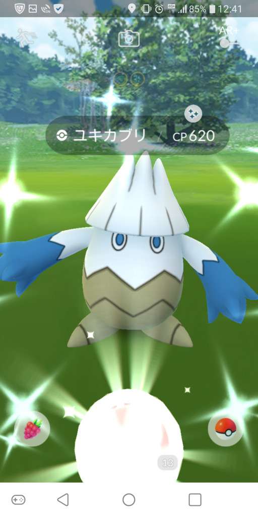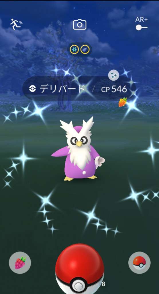 ・色違い出現したら、右上「AR+」のON・OFF切り替えで、タイミング良く写るまで何回も挑戦