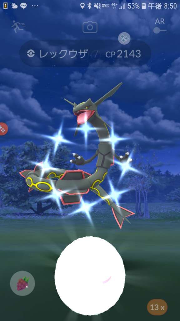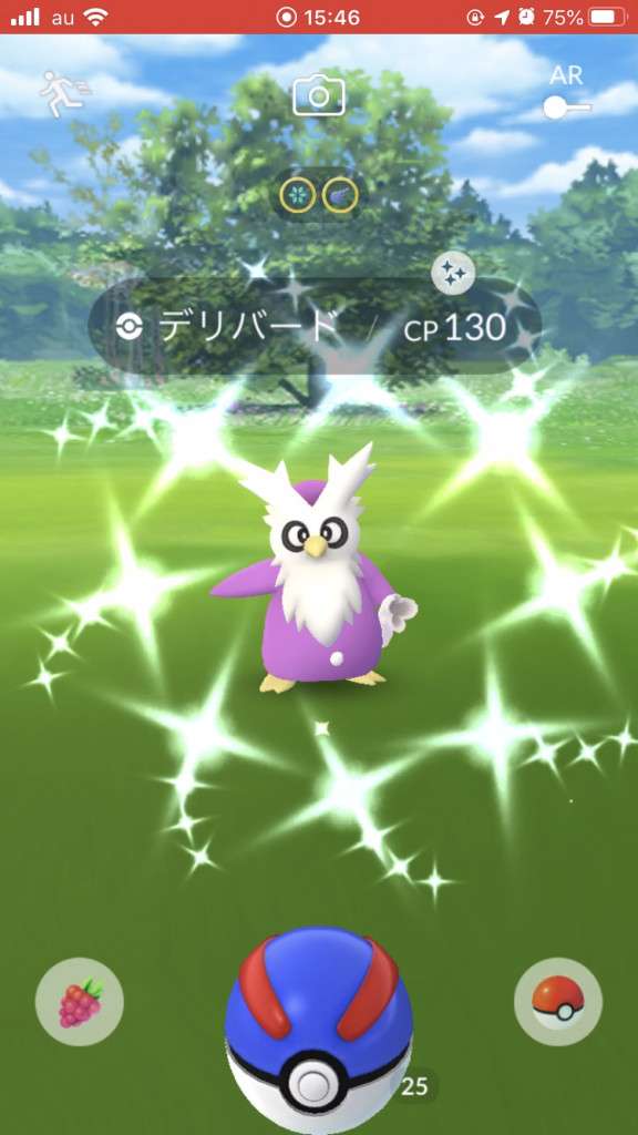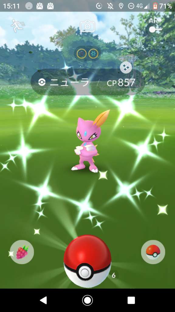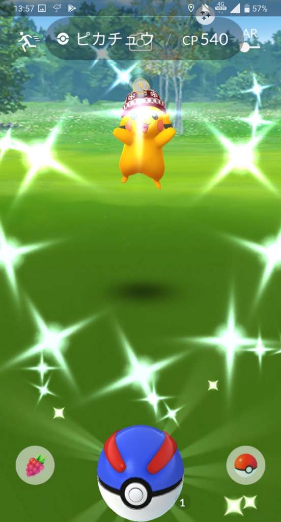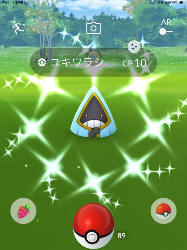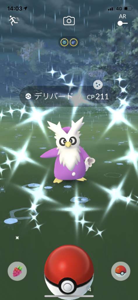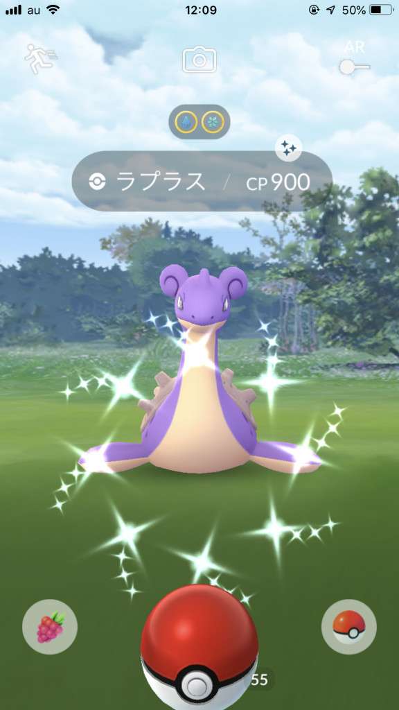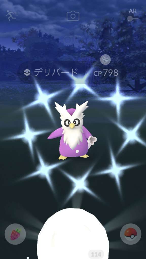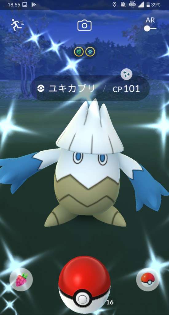 ・色違い出現したら、右上「AR+」のON・OFF切り替えで、タイミング良く写るまで何回も挑戦