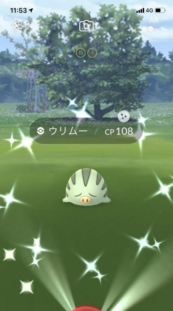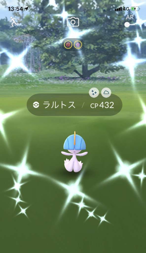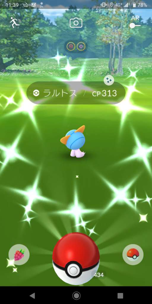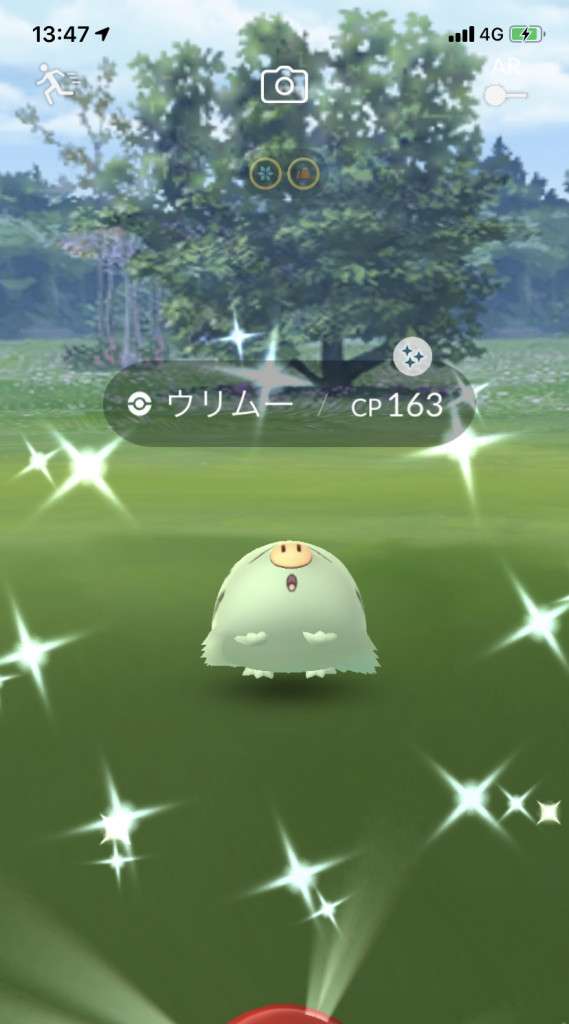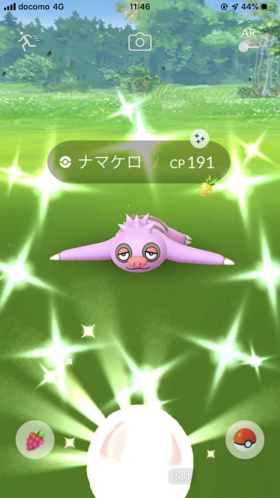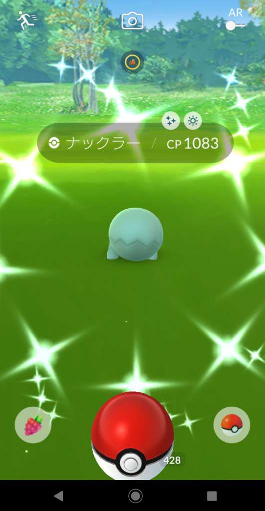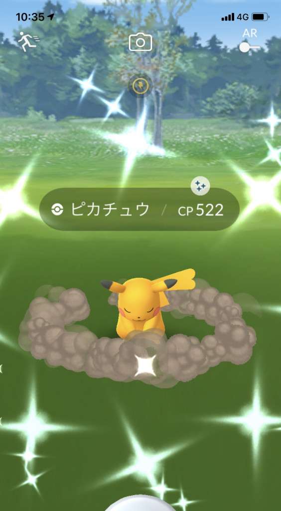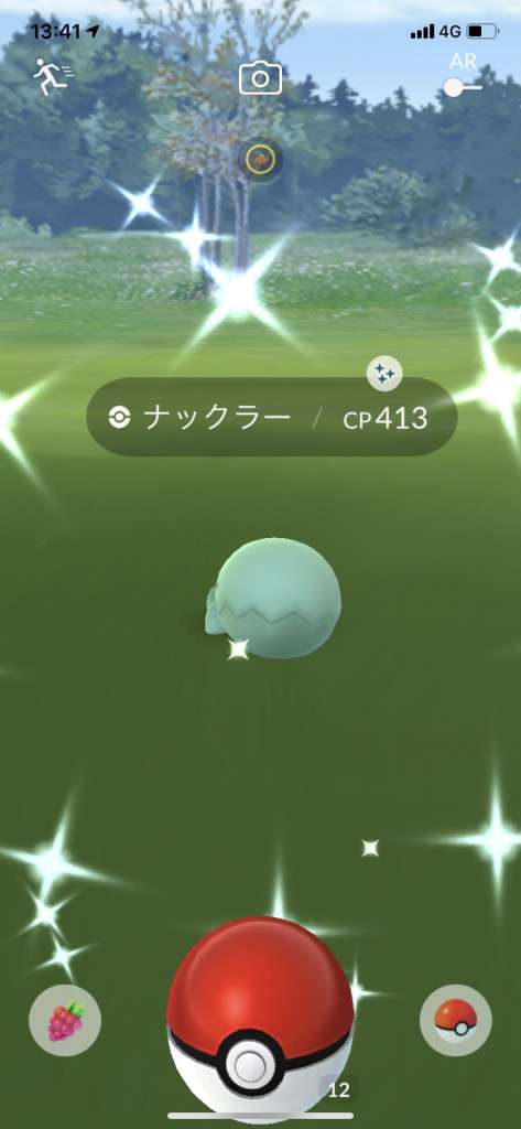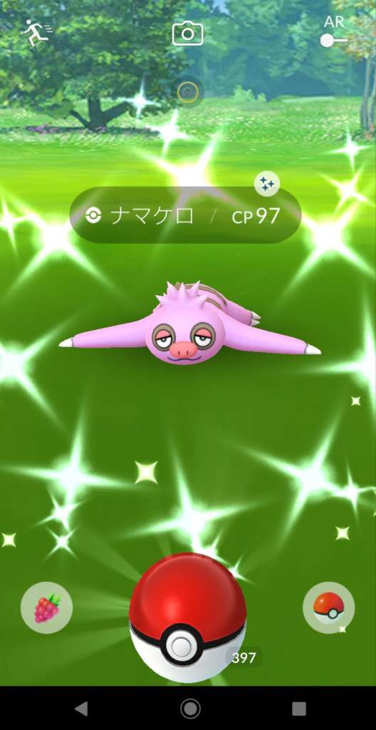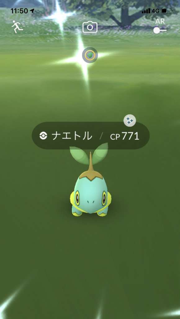 ・色違い出現したら、右上「AR+」のON・OFF切り替えで、タイミング良く写るまで何回も挑戦