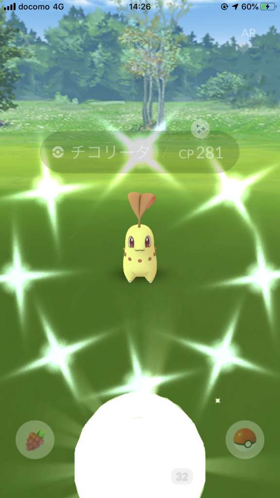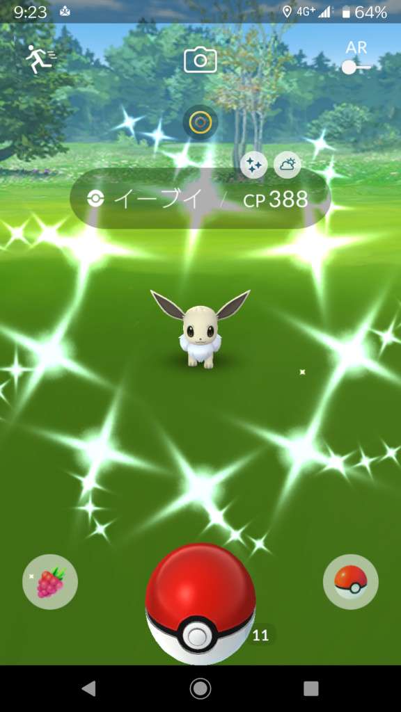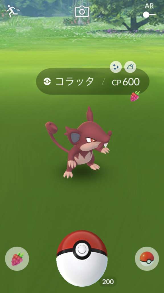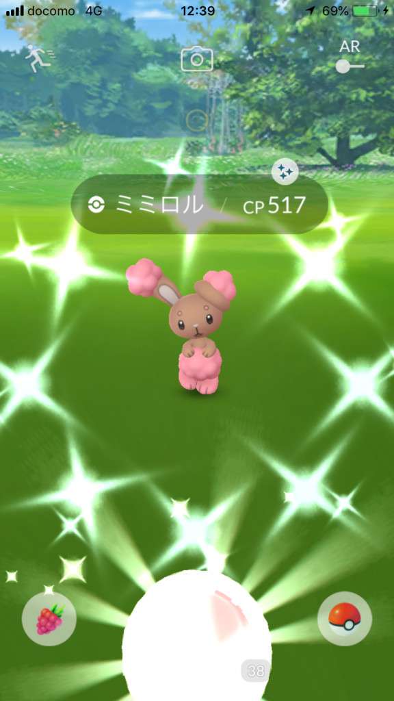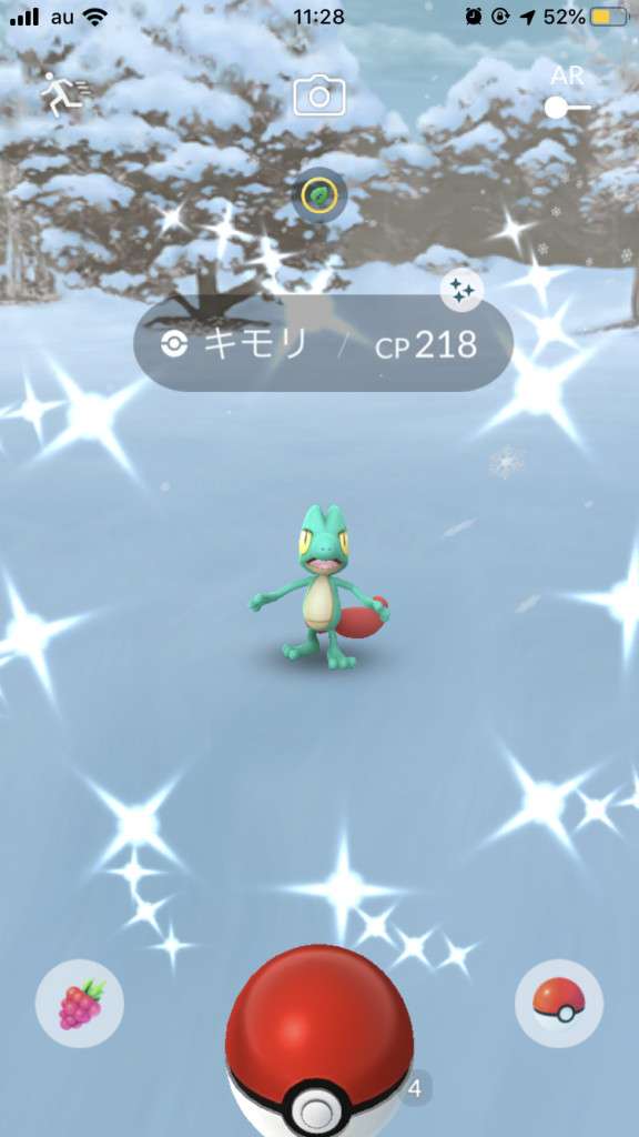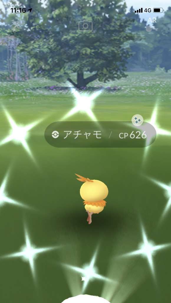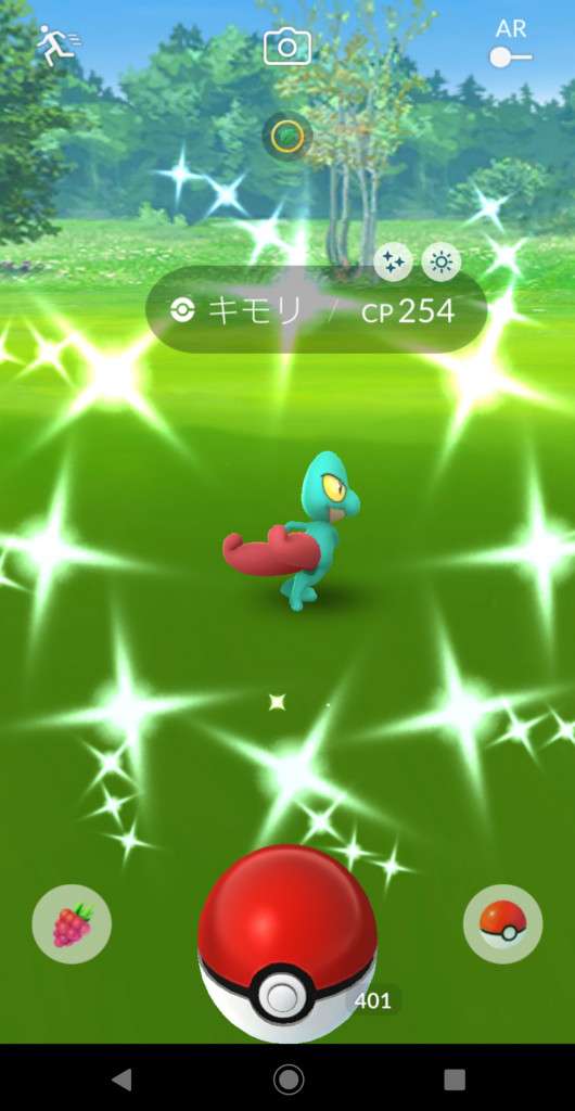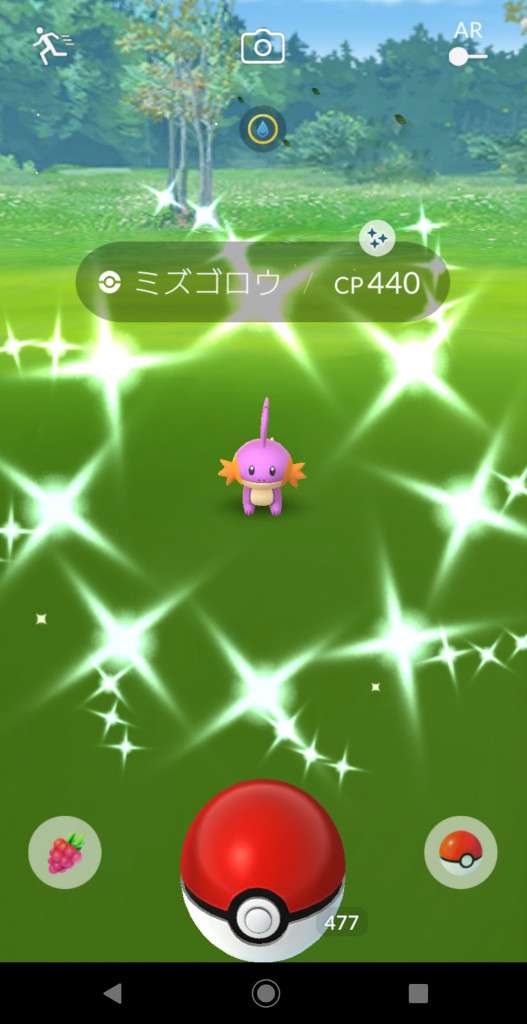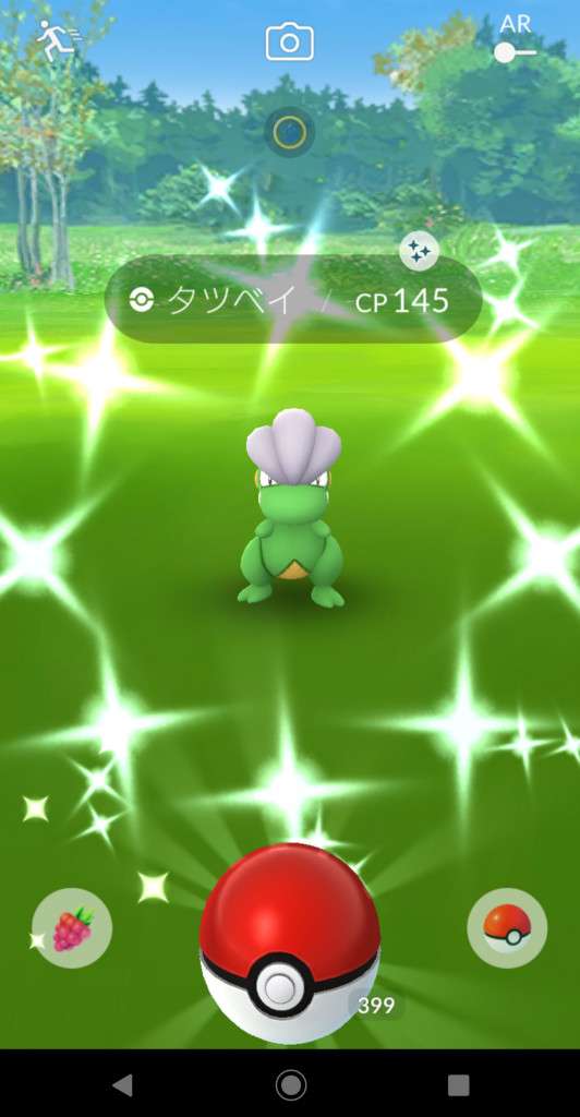 ・色違い出現したら、右上「AR+」のON・OFF切り替えで、タイミング良く写るまで何回も挑戦