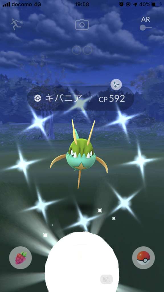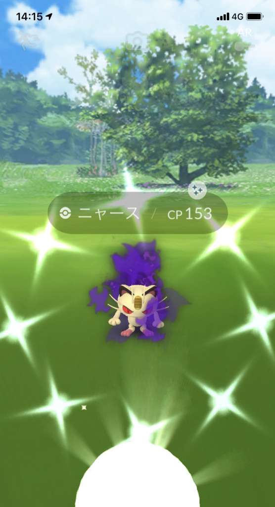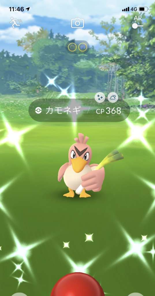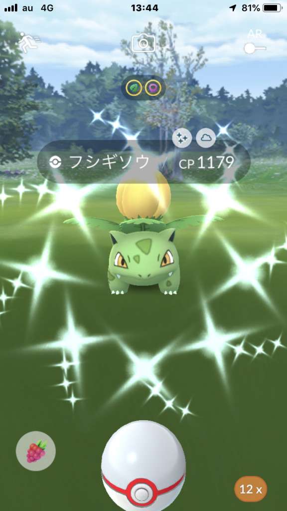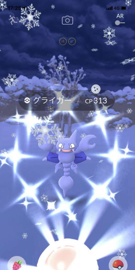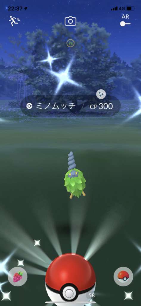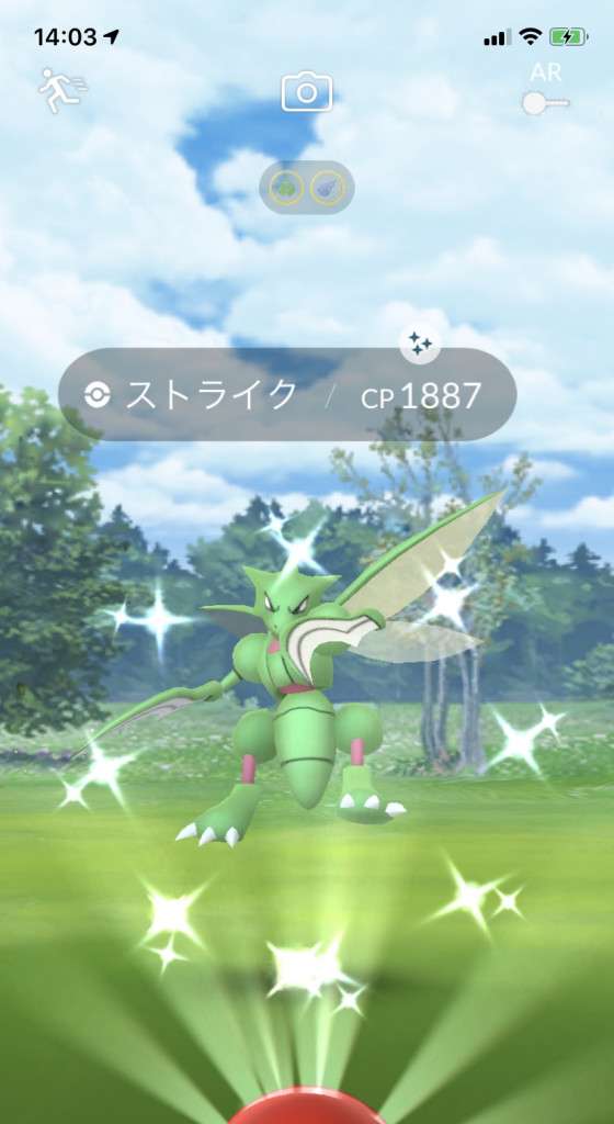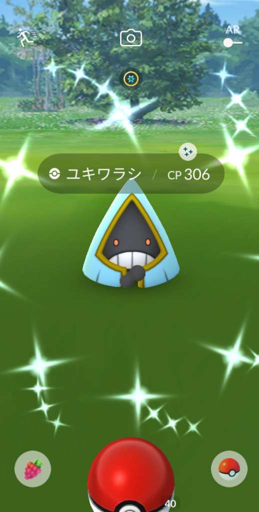 ・色違い出現したら、右上「AR+」のON・OFF切り替えで、タイミング良く写るまで何回も挑戦