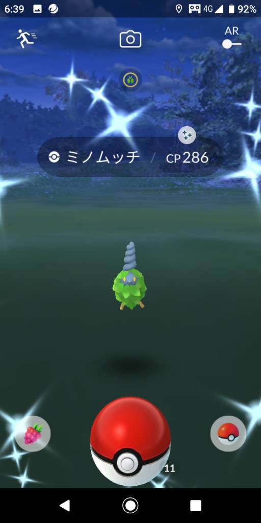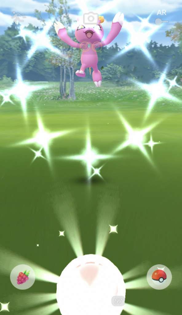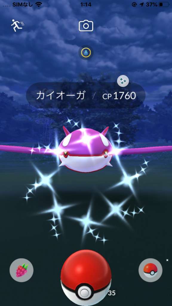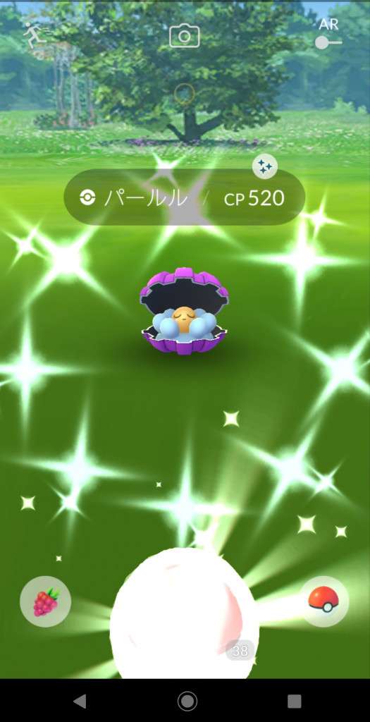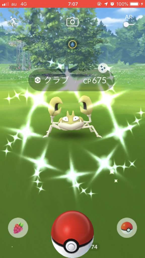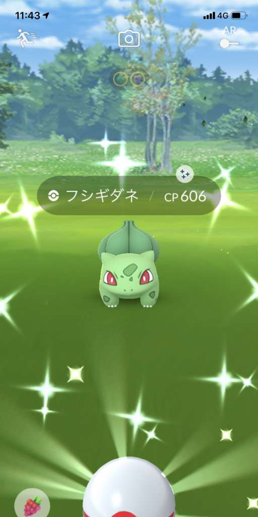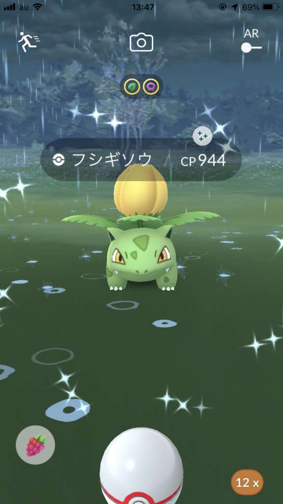 ・色違い出現したら、右上「AR+」のON・OFF切り替えで、タイミング良く写るまで何回も挑戦