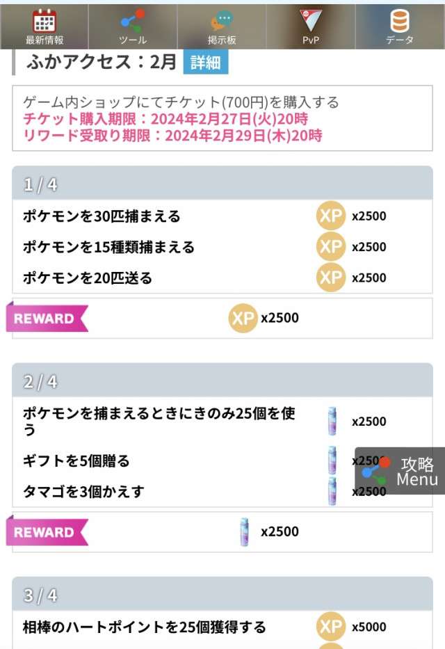 みんポケ月間XP獲得量ランキング