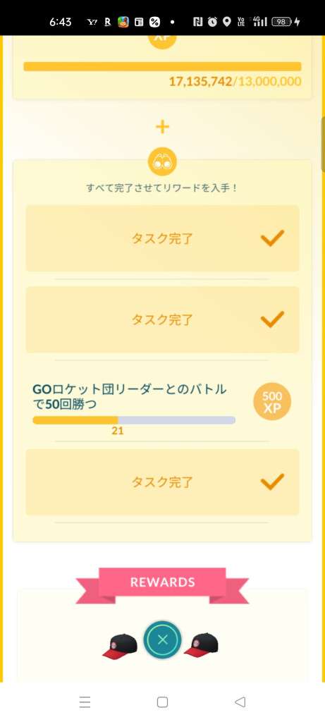 TL別XP・リワード