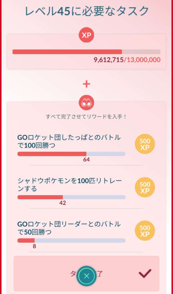 TL別XP・リワード
