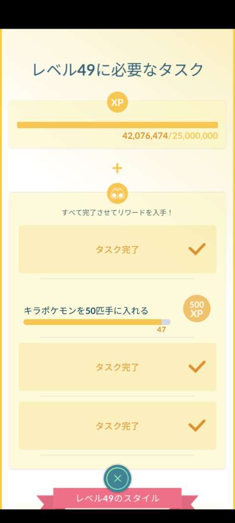 TL別XP・リワード
