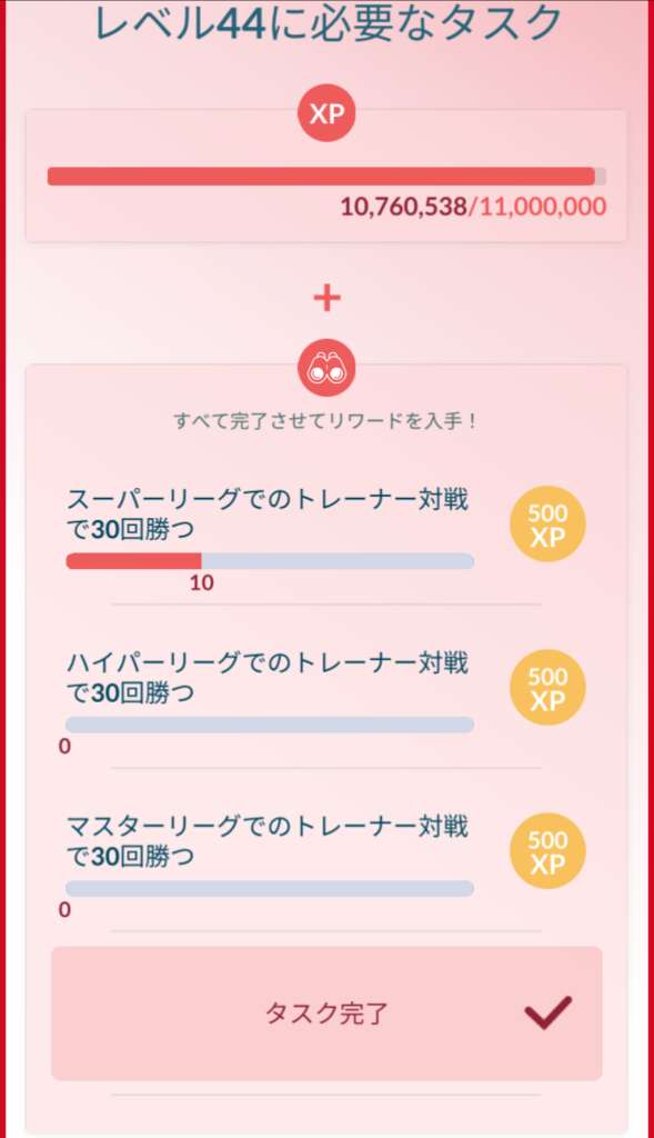 TL別XP・リワード