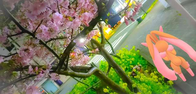 もうサクラが咲いてるんですか?早いですね♪ミミロップも春の香りに包まれて、幸せそうですね🌸