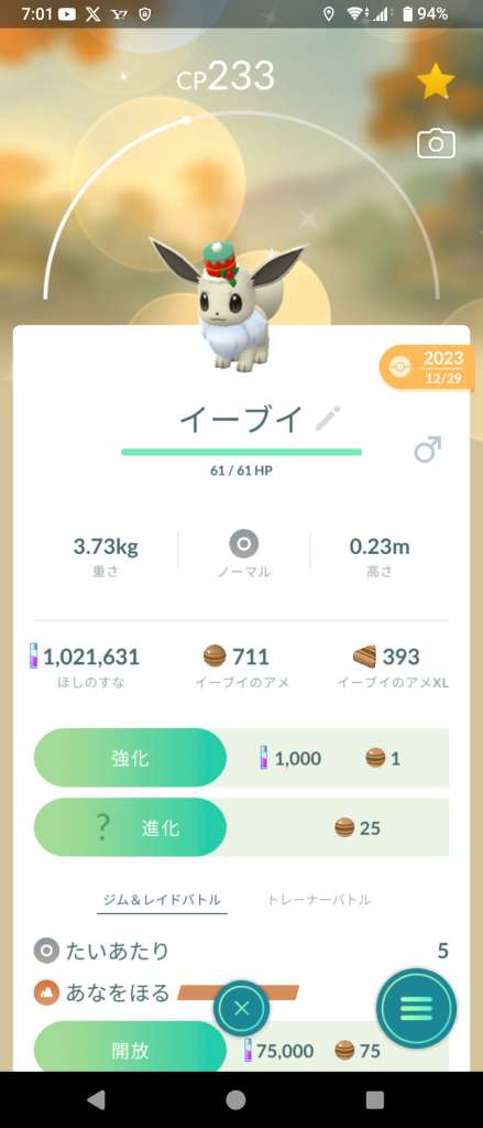 イーブイの進化先を指定する方法