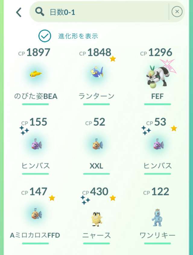 入手別最低個体値一覧