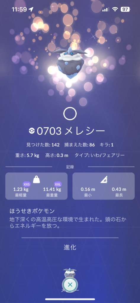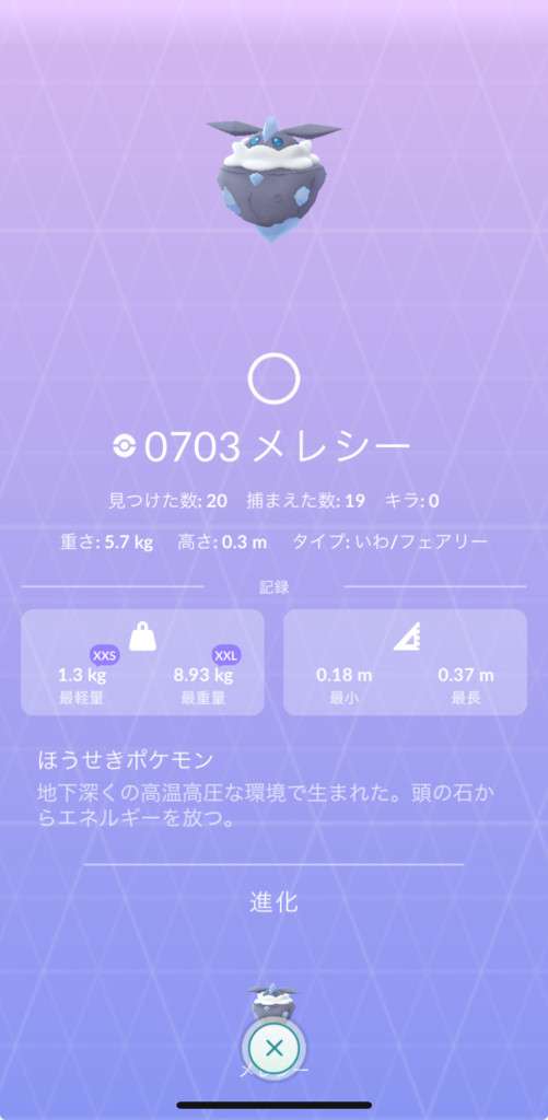 カワイイかどうかはおいておいて…皆さんのメレシー図鑑見せてください。私の所持状況から2kg以下もしくは0.2m以下どちらかのメレシー持ってる方にささやかながらの🎁お贈りします