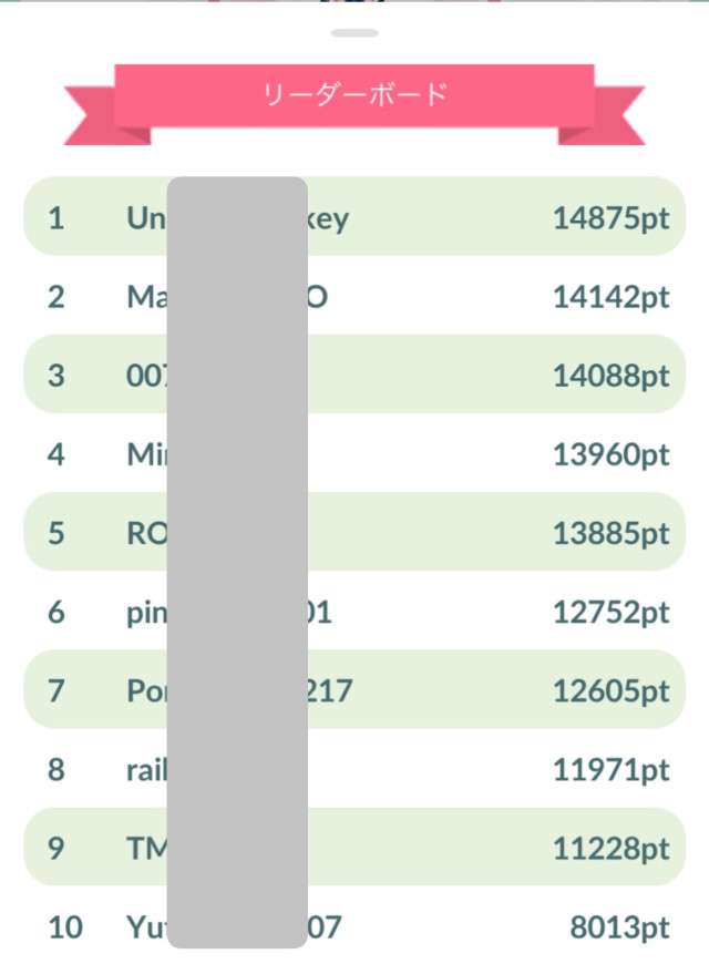 みんポケ月間XP獲得量ランキング