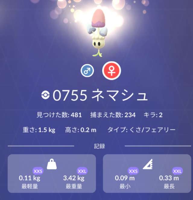 というわけで…ネマシュの図鑑のスクショお願いします。私の所持状況から0.11kg以下もしくは0.09m以下のネマシュ持ってる方に ★ささやかながらの★ 🎁お贈りします