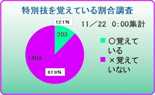 「ディアルガ、パルキアが特別技を覚えていた割合」を集計したいと思いますので、母数が10回(両方合算可)を超えた方は、レスをお願い出来ませんでしょうか。