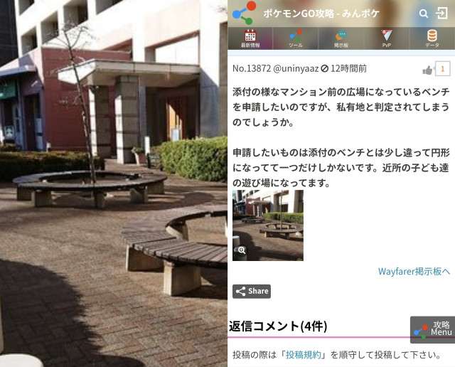 添付の様なマンション前の広場になっているベンチを申請したいのですが、私有地と判定されてしまうのでしょうか。