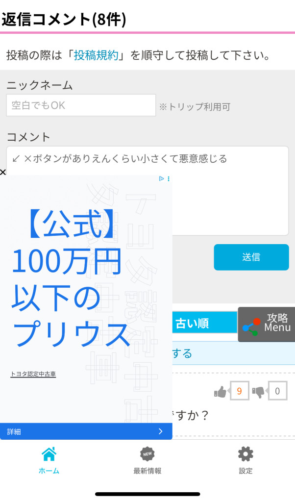消そうとして左上の✖️を押すと、広告が開いてしまう。