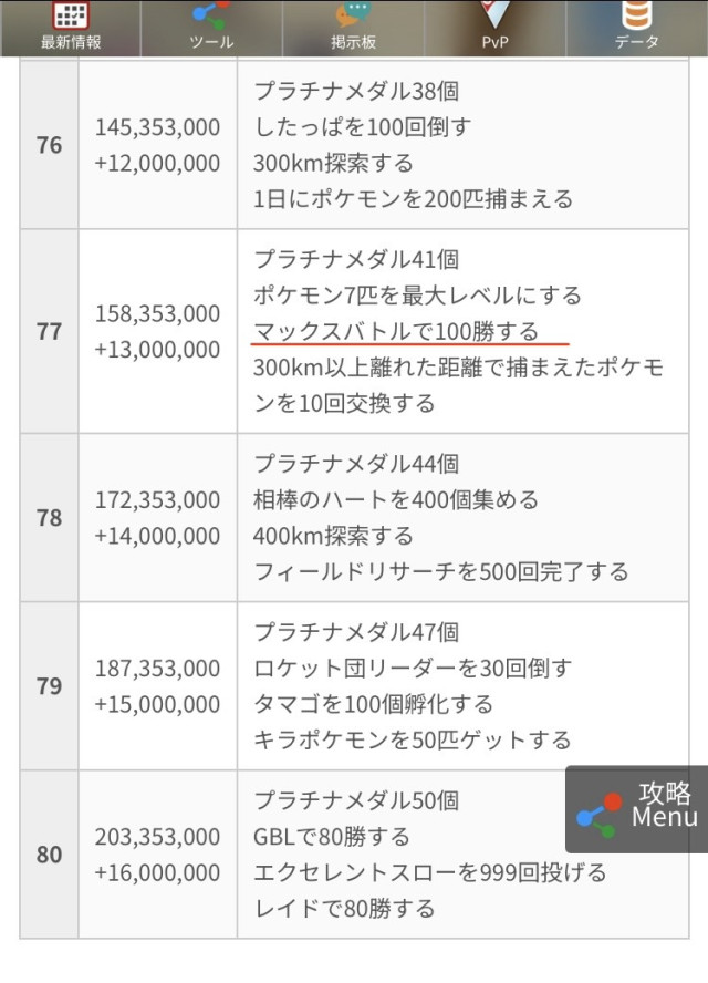 みんポケ月間XP獲得量ランキング