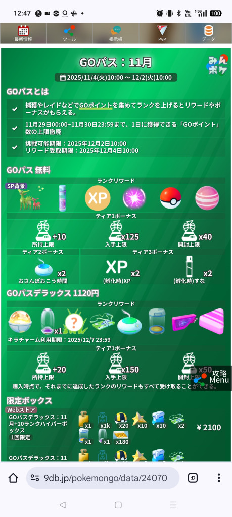 みんポケ月間XP獲得量ランキング