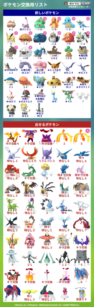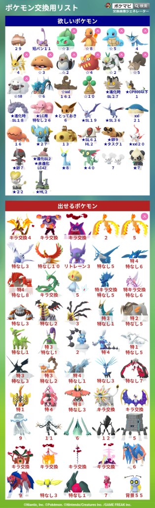 ポケモン交換リスト