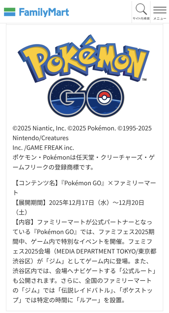 ファミマのホームページやSNSを見ていますが、なかなかポケGO関連のレイド案内を見つけられず···