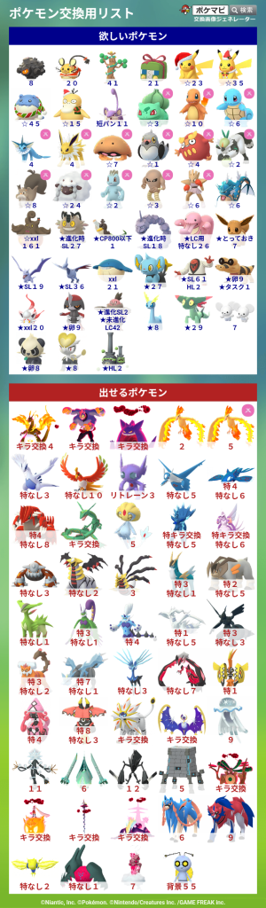 【大阪府】【京都府】12月22日(月)〜12月28日(日)、京都又は大阪付近で70体以上(京都は30体以上)の交換(非対面)を募集します。※キラ交換・色違い交換お約束の方は、単独交換可