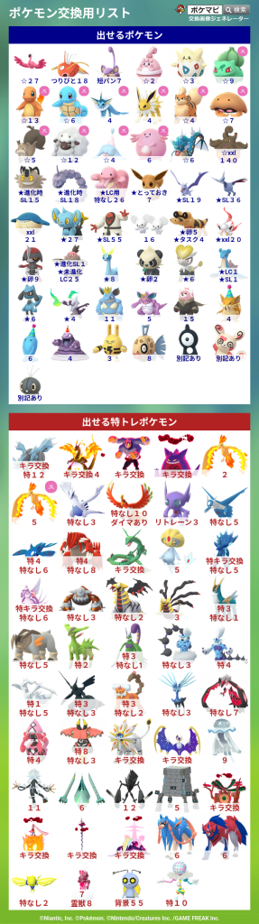 上記のポケモンをお出しいただける場合は、リストの☆ポケモン中からお好きなものを同数お出しします。