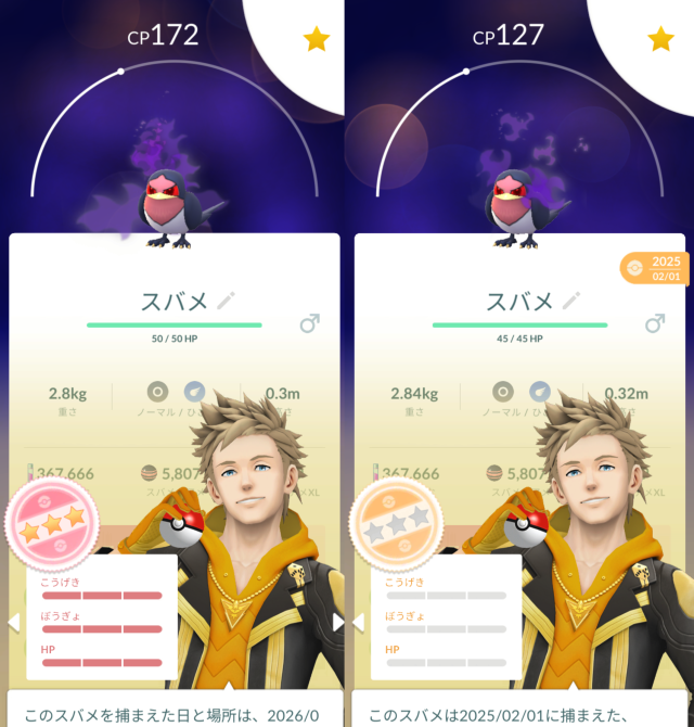 入手別最低個体値一覧