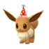 - パーティーハットをかぶった「イーブイ」が「フィールドリサーチ」のリワードで出現。
