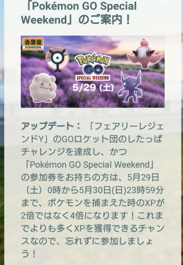 • 【5/20】参加者限定のボーナスがフェアリーレジェンドのグローバルチャレンジ達成で捕獲時のXP4倍(公式情報)