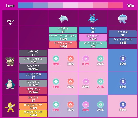 ![]() ![]() ![]() こおり/フェアリー | ![]() ![]() ![]() みず/フェアリー | ![]() ![]() ![]() みず/ゴースト |