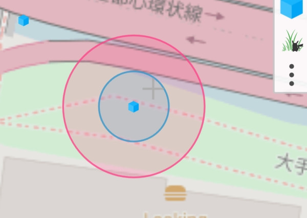 ポケストップ・ジムとパワースポットとの必要距離:20m(ピンク)
