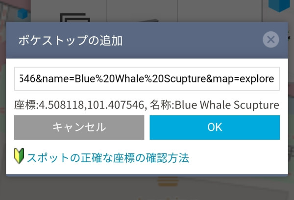ポケストップやジムの追加で、座標情報をURLから指定した場合に、URL内にスポット名(クエリ名name)が含まれている場合は、その値を自動的にポケストップやジムの名称にセットするようにしました。
