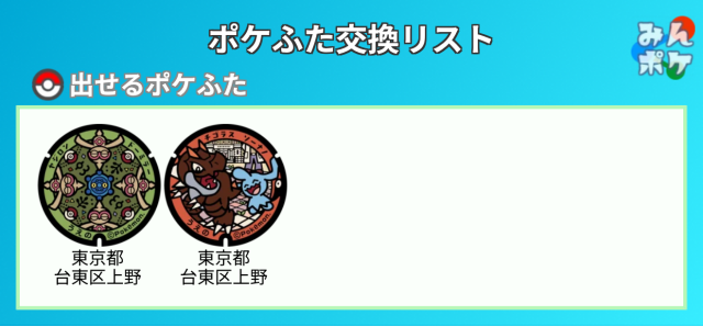 今、スタンプ付きポケふたギフト『東京都上野の2種類』を各15個持っています。