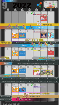 9/06(火)![]() ![]() ![]() ムンナ 捕獲時すな2倍 | 9/13(火)![]() ![]() ![]() ラルトス 捕獲時XP2倍 | 9/20(火)![]() ![]() ![]() ココドラ 捕獲時アメ2倍 | 9/27(火)![]() ![]() ![]() チラーミィ 転送時アメ2倍 |