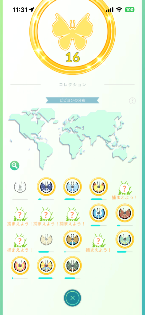 ビビヨンは様々な模様のあるポケモンで、ポケモンGOでは18種類が存在します。すべての模様を集めるには各国(各地域)のギフトをピン留めしていく必要があります。