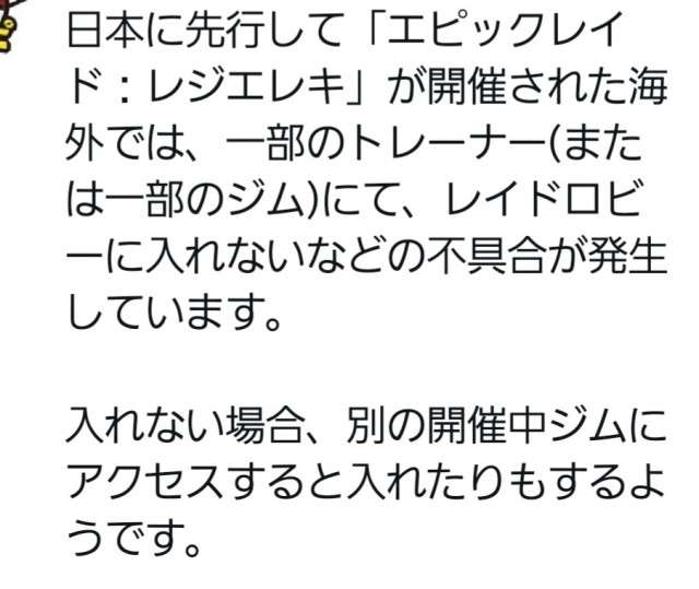 • 前回のエピックレイドで野生出現ボーナスの表記はあったが、実際はレアポケモンが野生出現しなかったため、今回も出現しない可能性あり。
