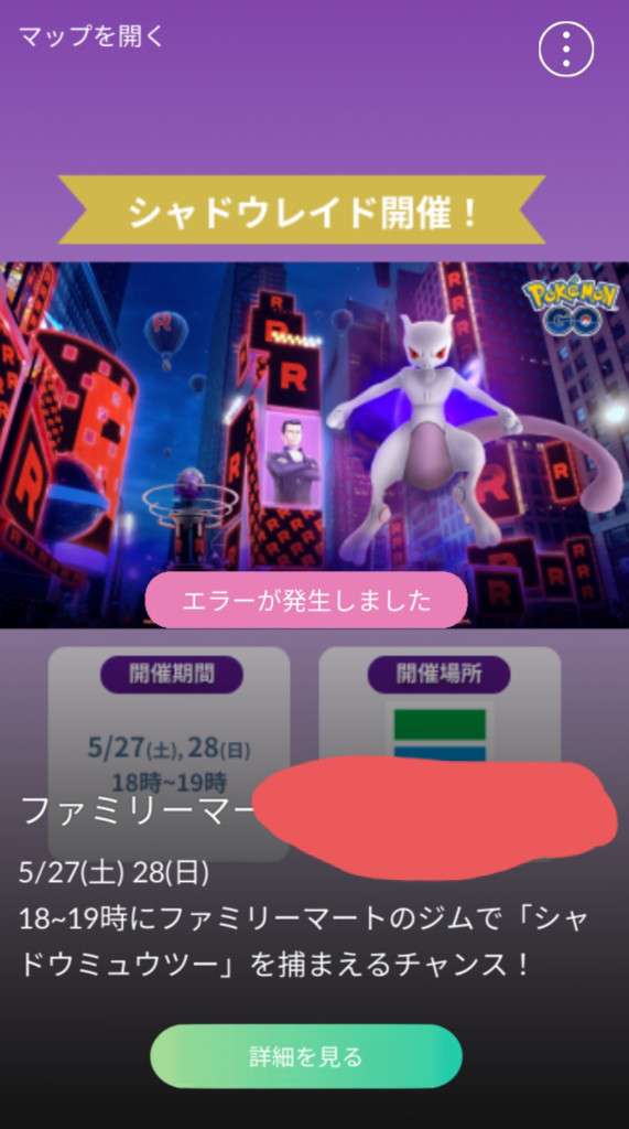 「土曜日は全てのジムでシャドウレイドが、日曜日はシャドウレイドと通常レイドがどちらも発生するので、効率良くシャドウミュウツーと出逢いたければ、土曜日に頑張るのがオススメです」